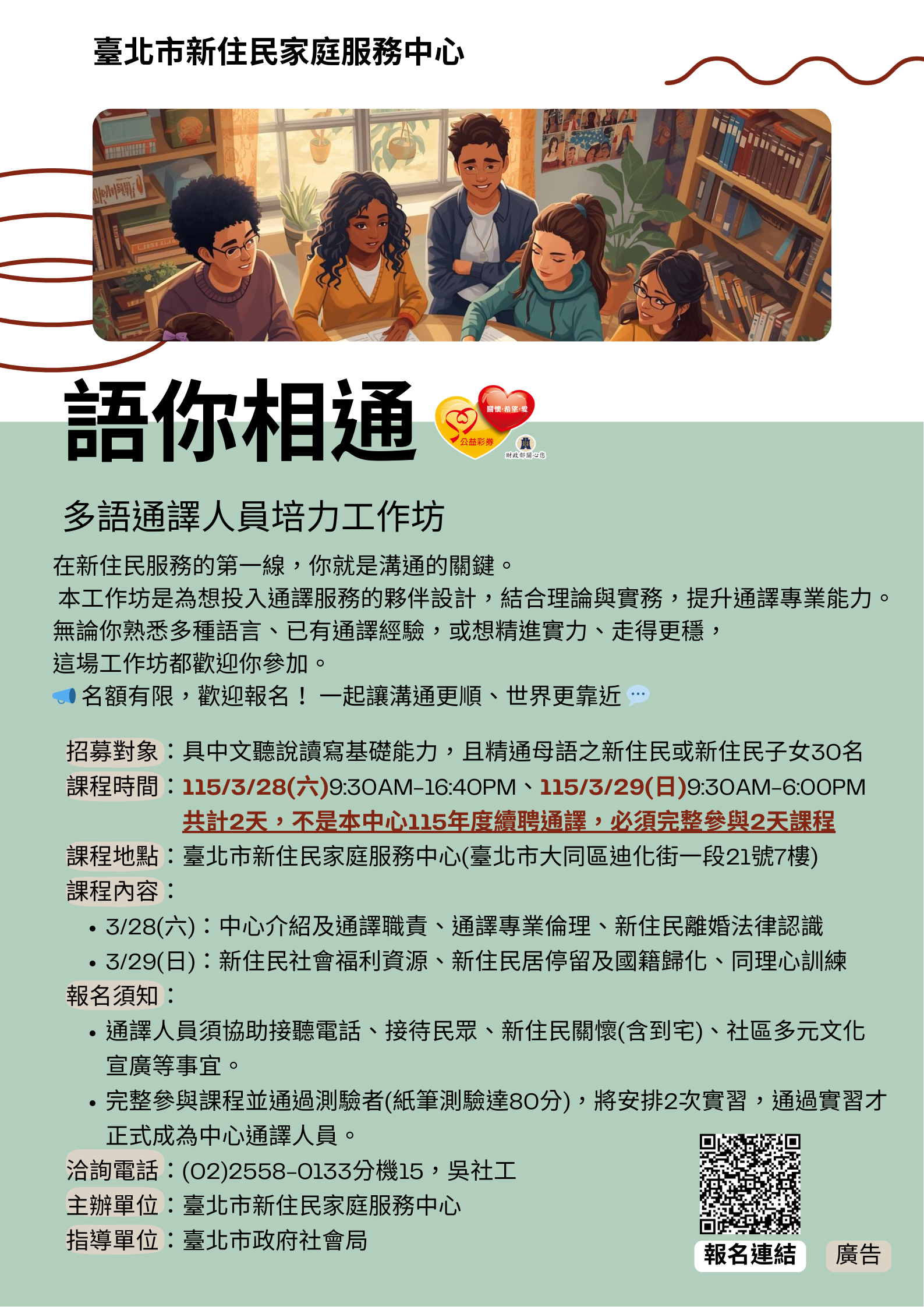 【中心活動宣導】📣語你相通-多語通譯人員培力工作坊📣