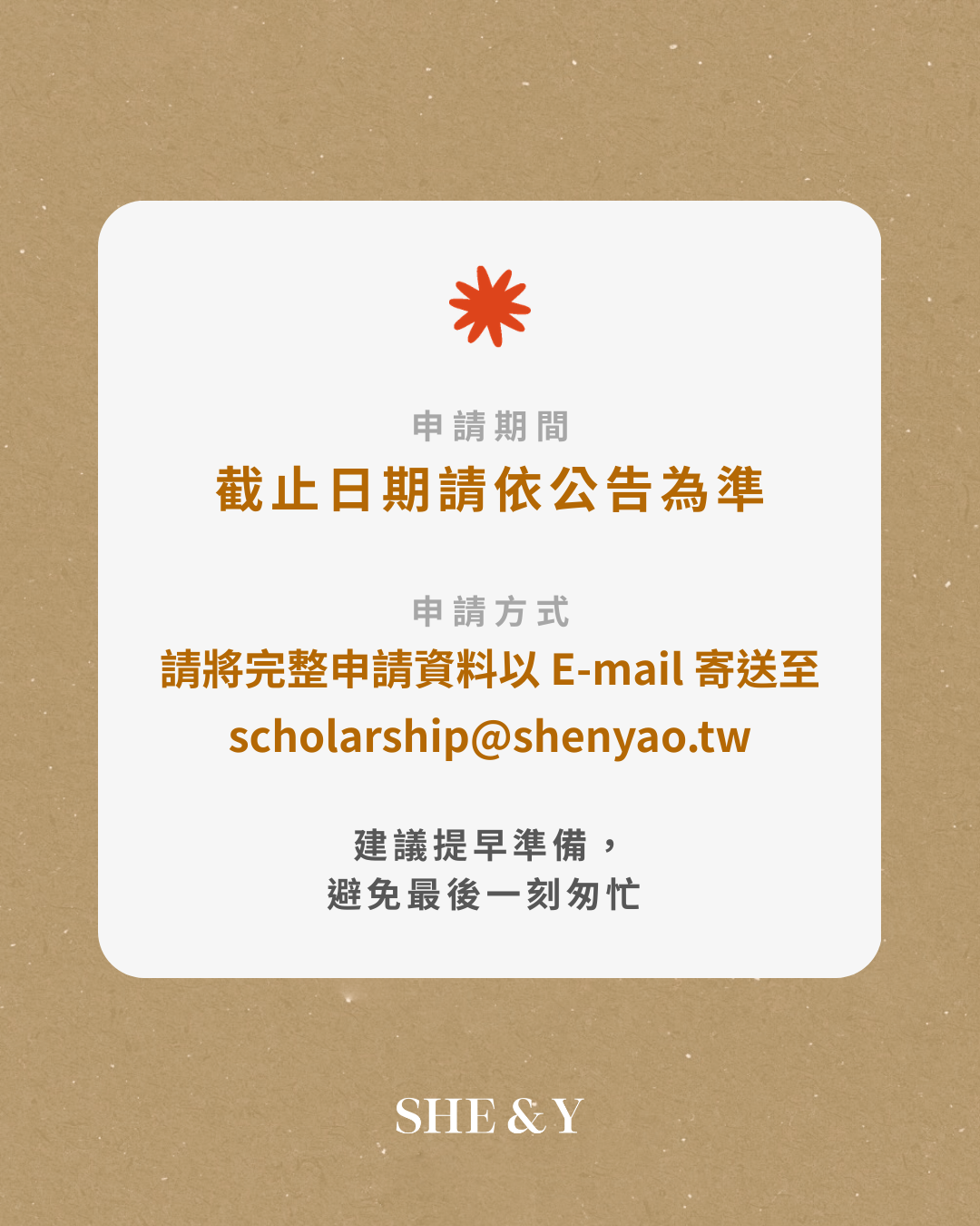 若申請者有任何問題,也歡迎透過官網連結或獎學金團隊Email: scholarship@shenyao.tw 聯繫。