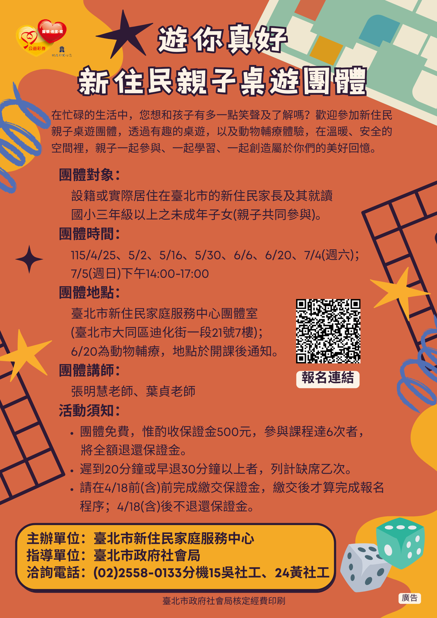 🎉 【中心活動宣廣】遊你真好-新住民親子桌遊團體 🎲🐾
