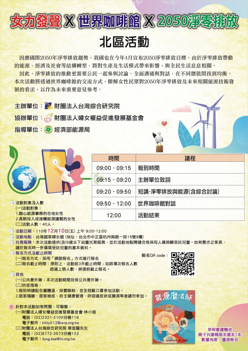 活動名稱:「女力發聲 X 世界咖啡館 X 2050淨零排放」北區活動