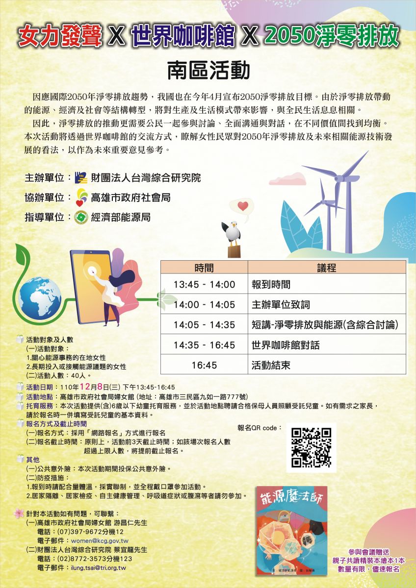 活動名稱:「女力發聲 X 世界咖啡館 X 2050淨零排放」南區活動