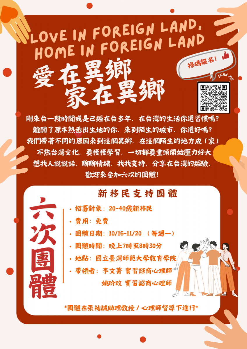 【轉知】臺灣師範大學-《愛在異鄉,家在異鄉 Love in the foreign land, Home in the foreign land 》團體成員招募中~