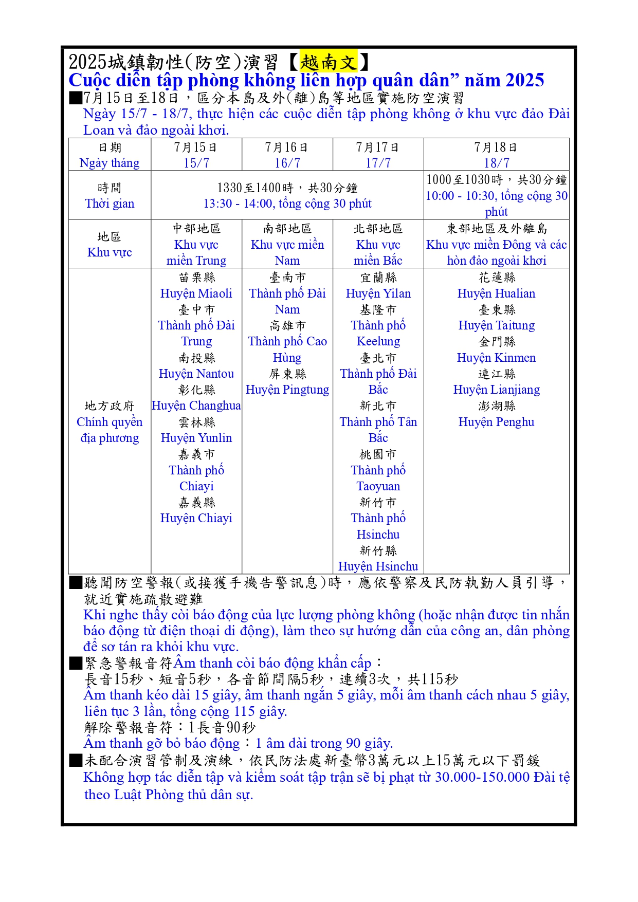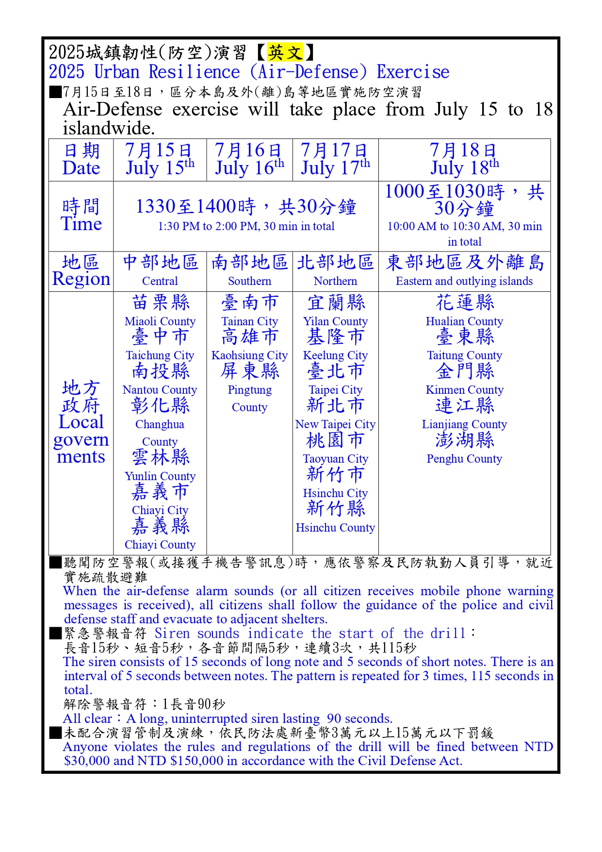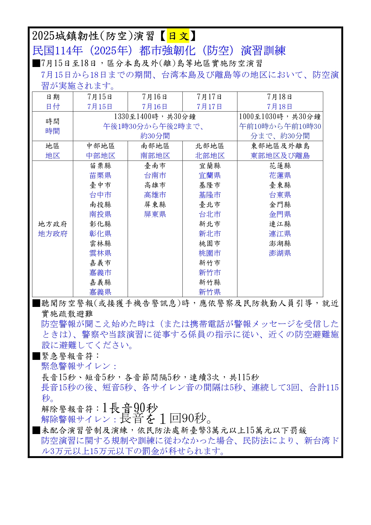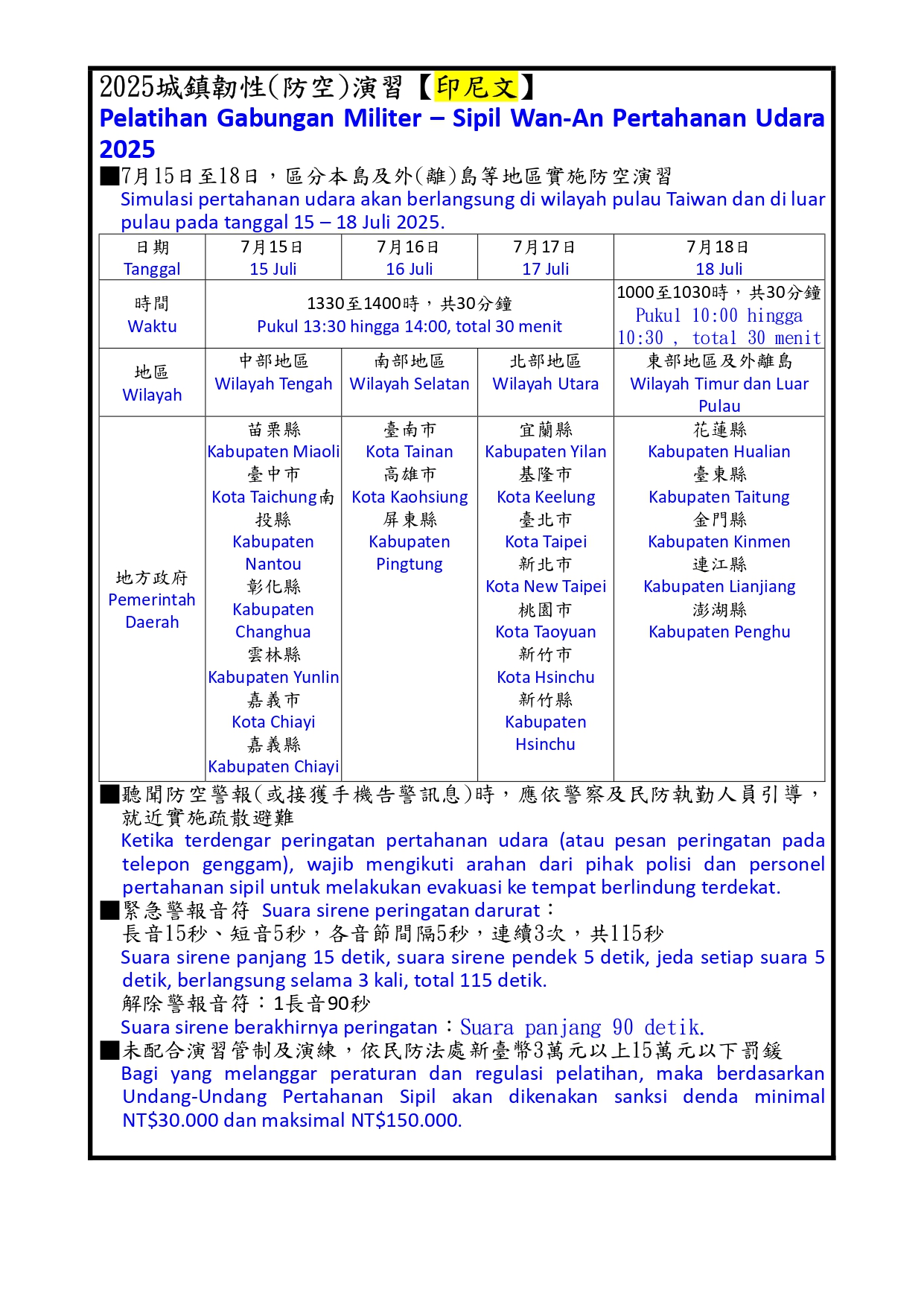 【宣導】2025城鎮韌性(防空)演習多國語言文宣
