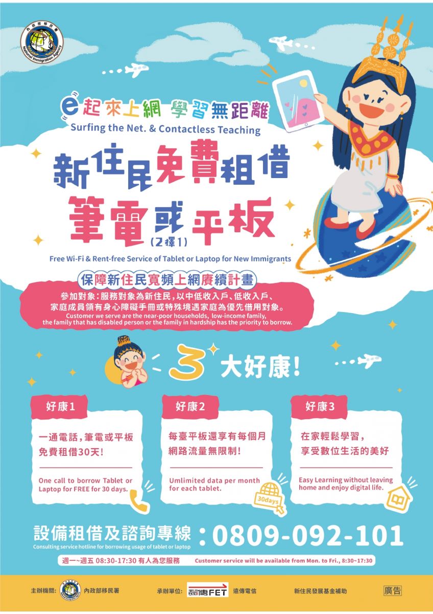 【轉知】內政部移民署 臺北市服務站-新住民免費租借行動設備服務