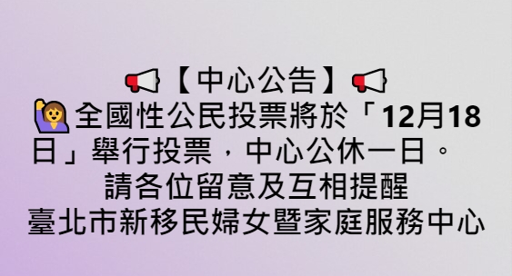 12月18日公民投票中心公休一日