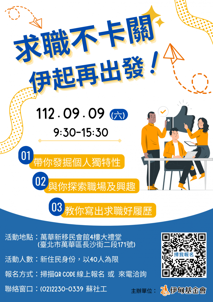 趕快來報名參加「求職不卡關 伊起再出發」課程