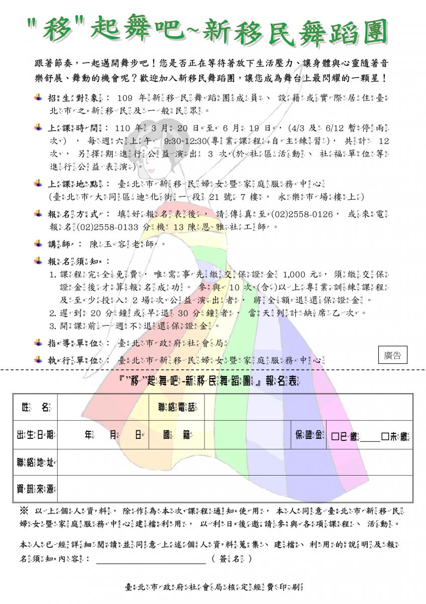 110年度「移」起舞吧~新移民舞蹈團報名開始囉!