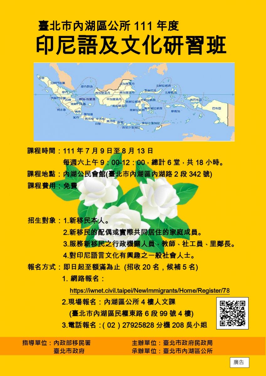 【轉知】內湖區公所印尼語及文化研習班