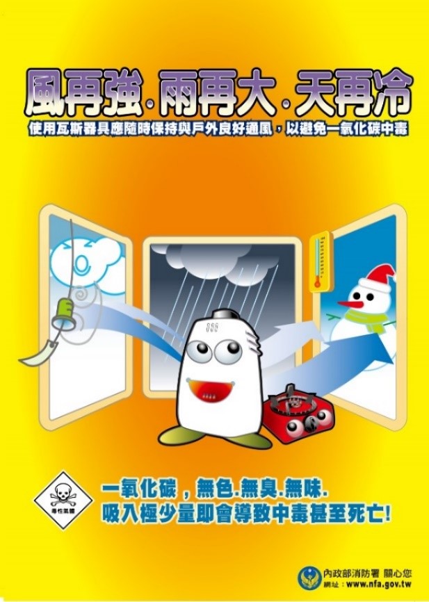 【轉知】內政部消防署-防範一氧化碳中毒~使用瓦斯器具應保持良好通風