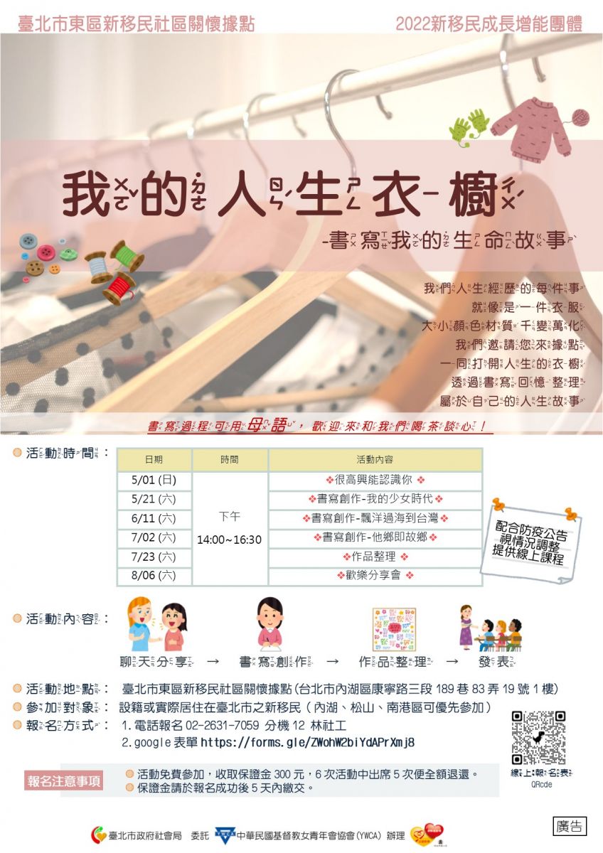 【轉知】東區據點我的人生衣櫥-書寫我的生命故事-辦理時間修改