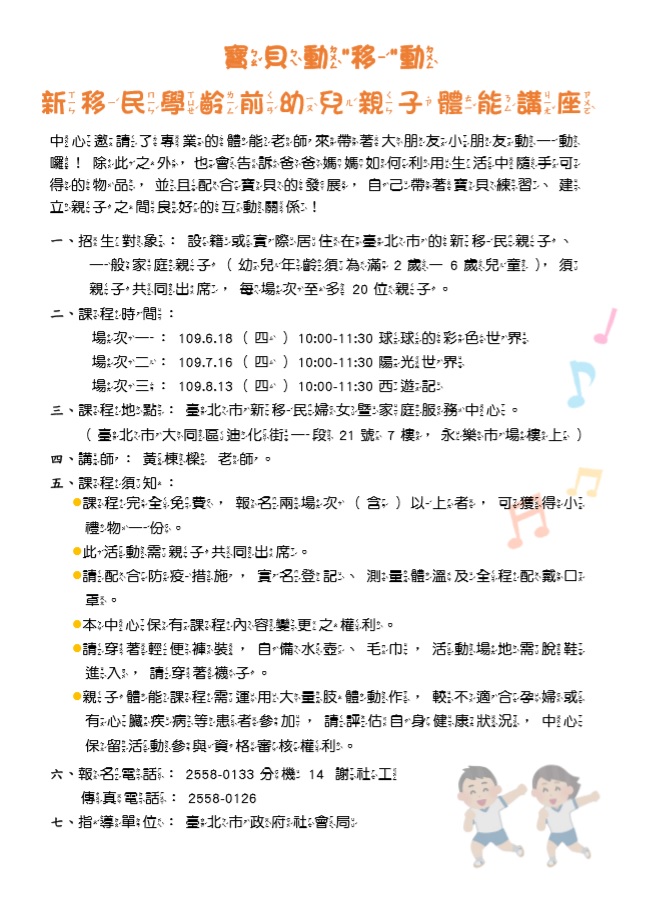 邀請專業的體能老師帶領爸爸媽媽配合小朋友的發展憶起做適當的活動