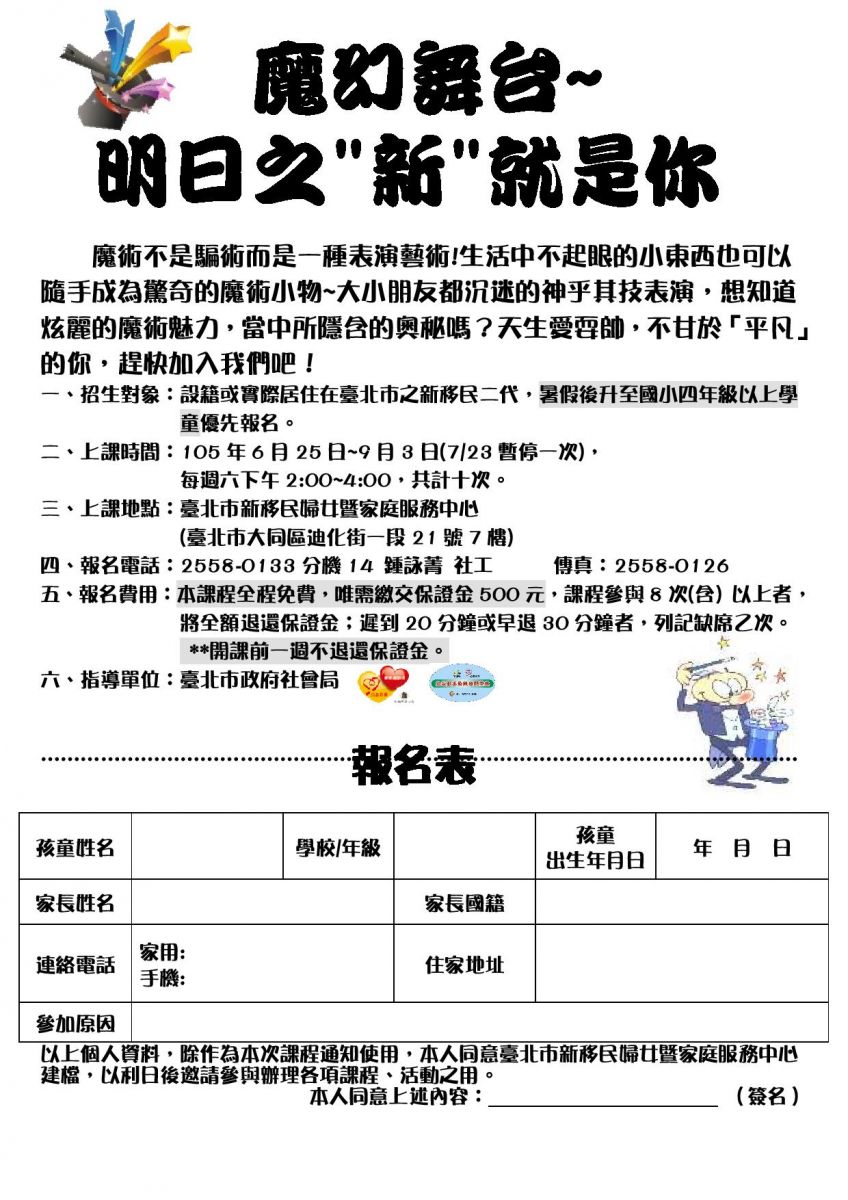 2.活動地點:台北市新移民婦女暨家庭服務中心(台北市迪化街一段21號7樓)