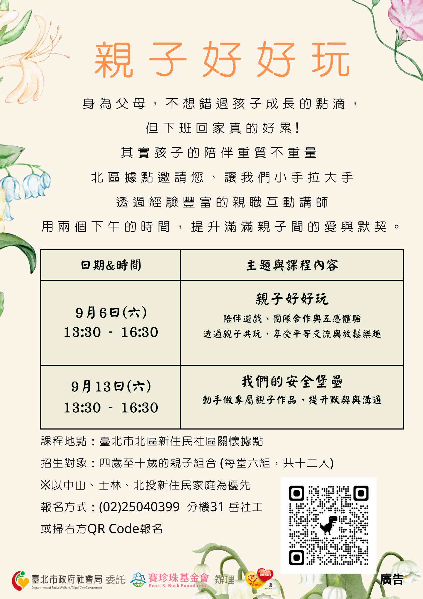 【轉知】北區據點活動-親子好好玩:親子工作坊