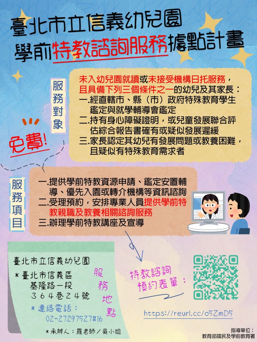 【轉知】臺北市立信義幼兒園-特教諮詢服務活動宣傳
