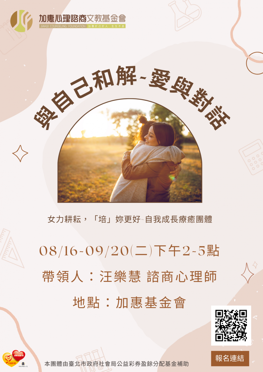 【轉知】加惠基金會公益婦女團體-女力耕耘,「培」妳更好~自我成長療癒團體