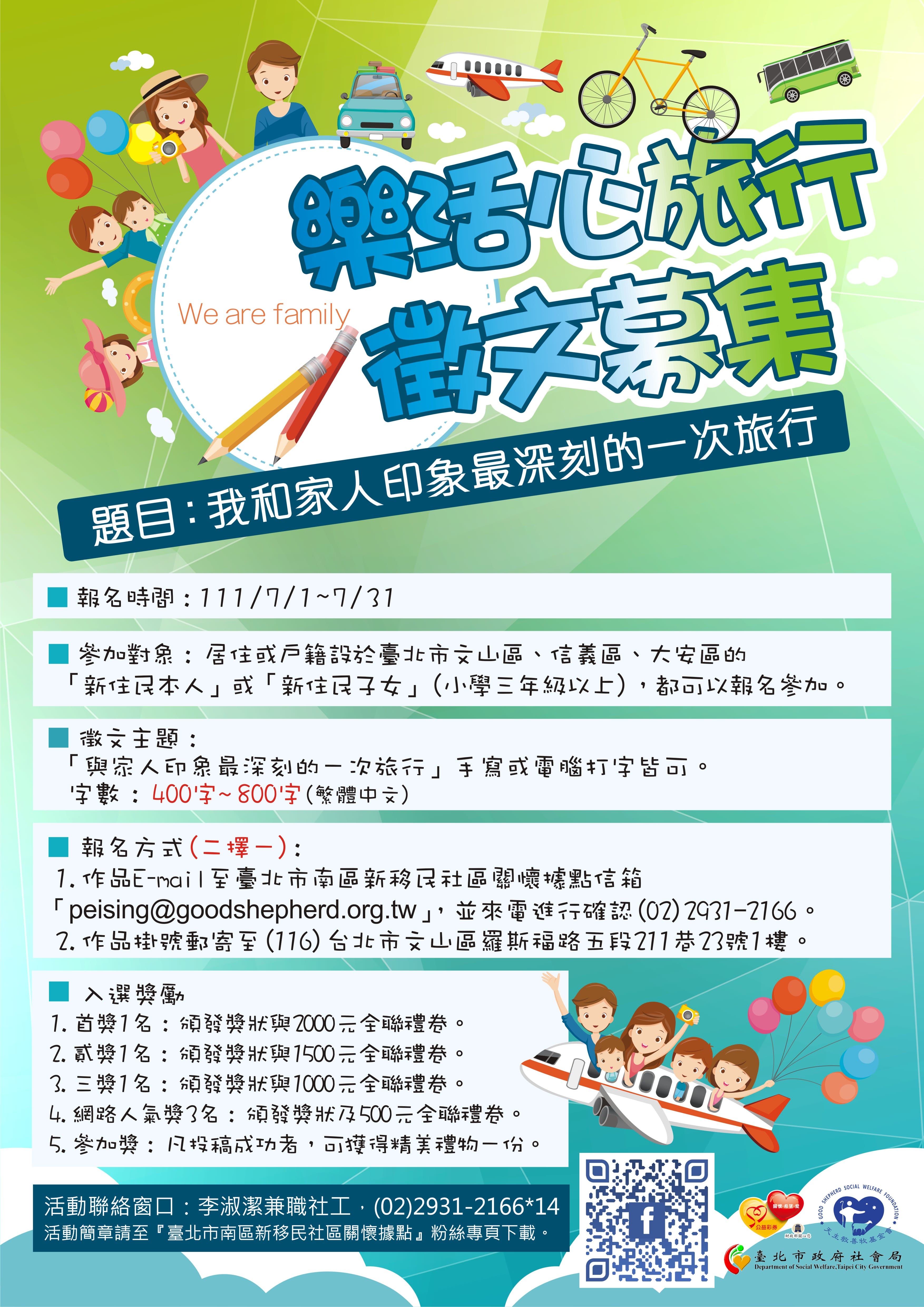 【轉知】臺北市南區新移民社區關懷據點"徵文募集"