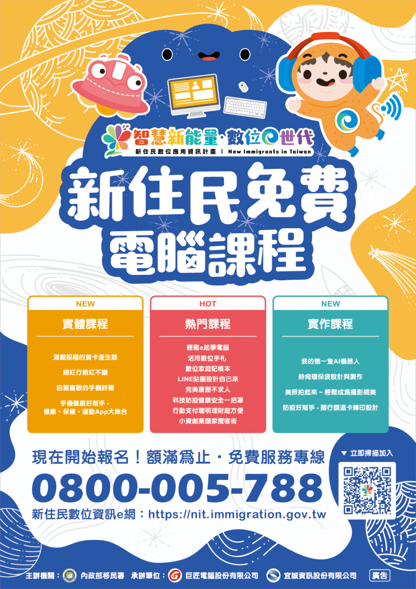 【轉知】新住民數位資訊e網推廣(移民署台北市服務站)