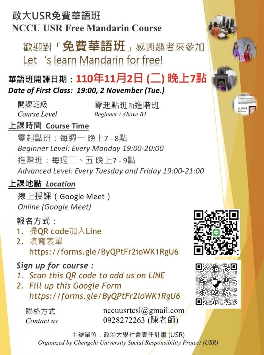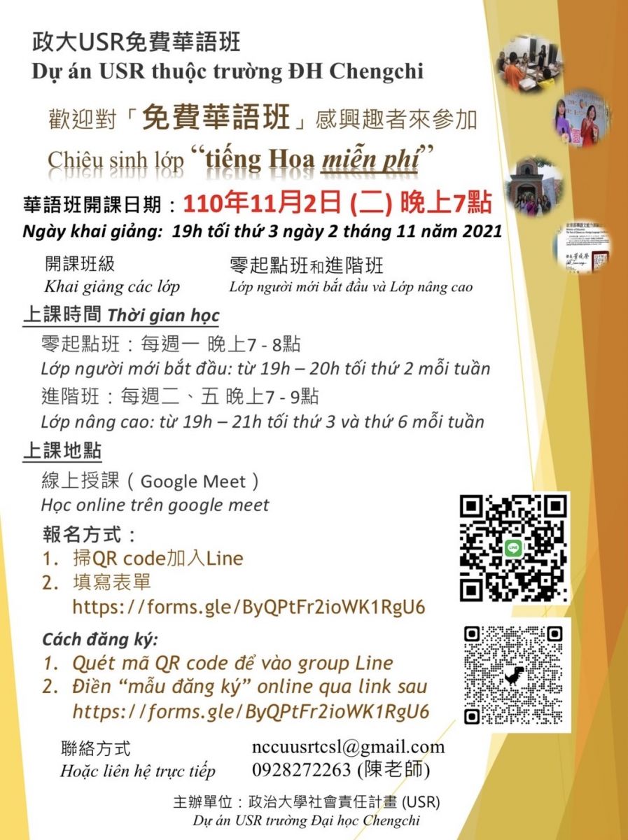 【轉知】政大USR計畫新住民關懷團隊底下的社區華語班