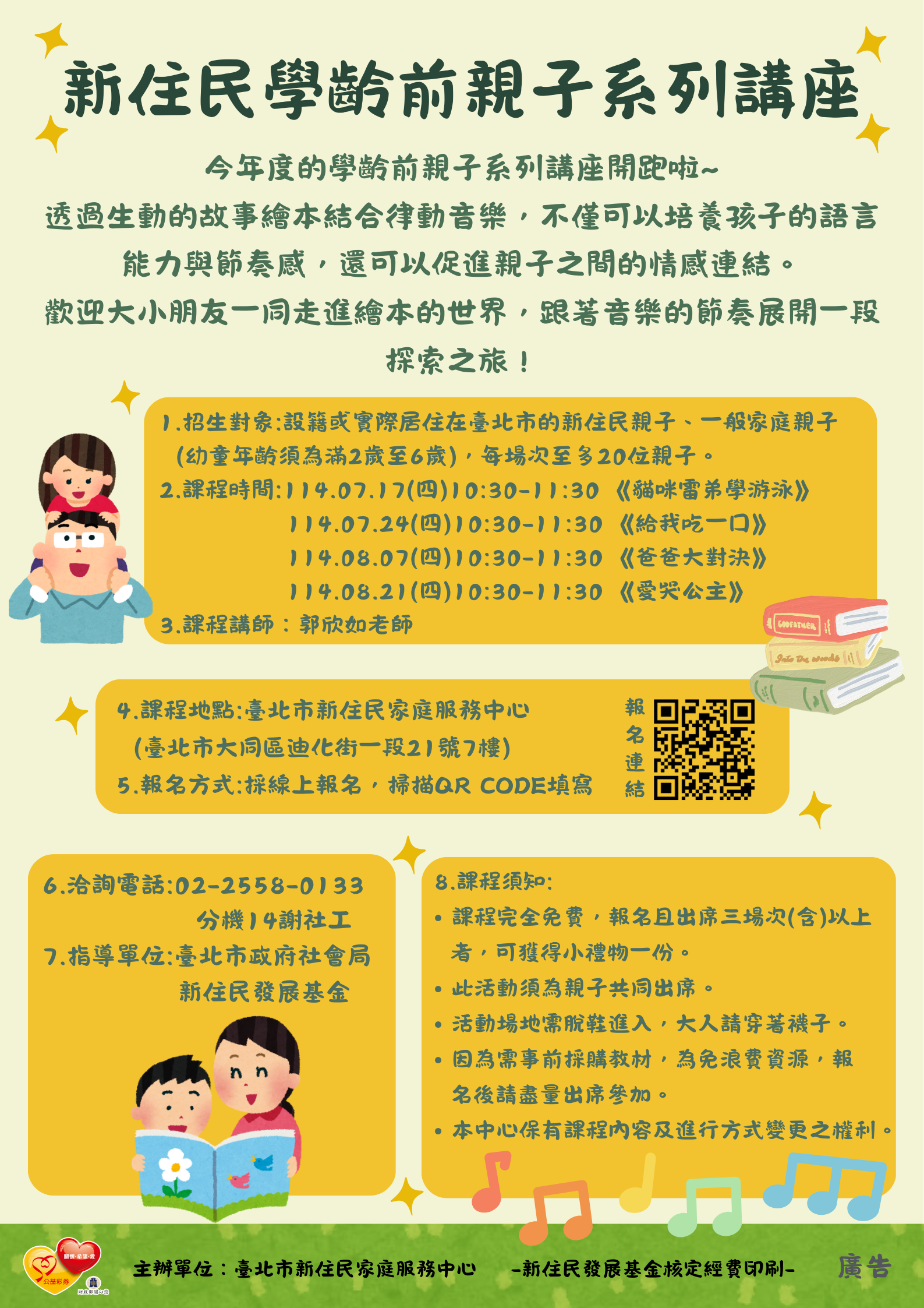 歡迎大小朋友一同走進繪本的世界,跟著音樂的節奏展開一段探索之旅!