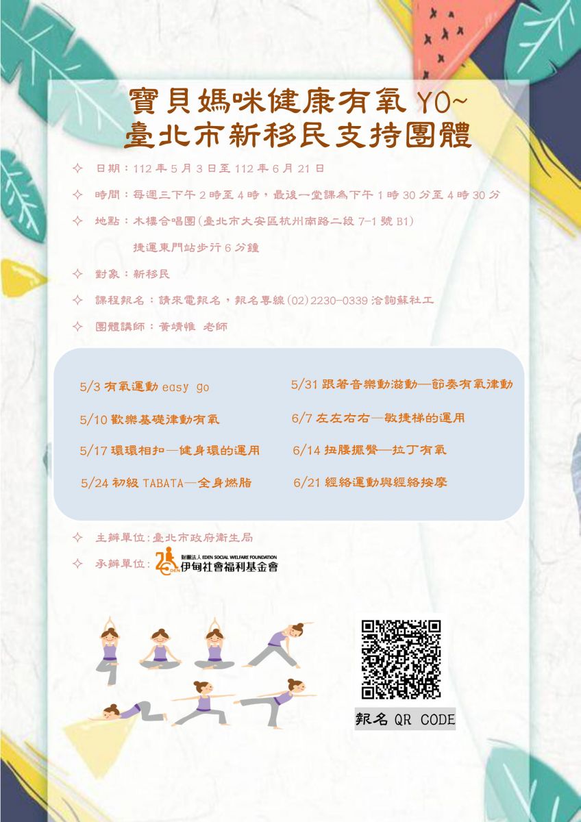 【轉知】財團法人伊甸社會福利基金會新移民家庭成長中心-「寶貝媽咪健康有氧YO~臺北市新移民支持團體」