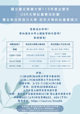 【轉知】國立臺北商業大學-113年度企管系USR大學社會責任計劃 雙北新住民培力大學-百年大學的社會實踐