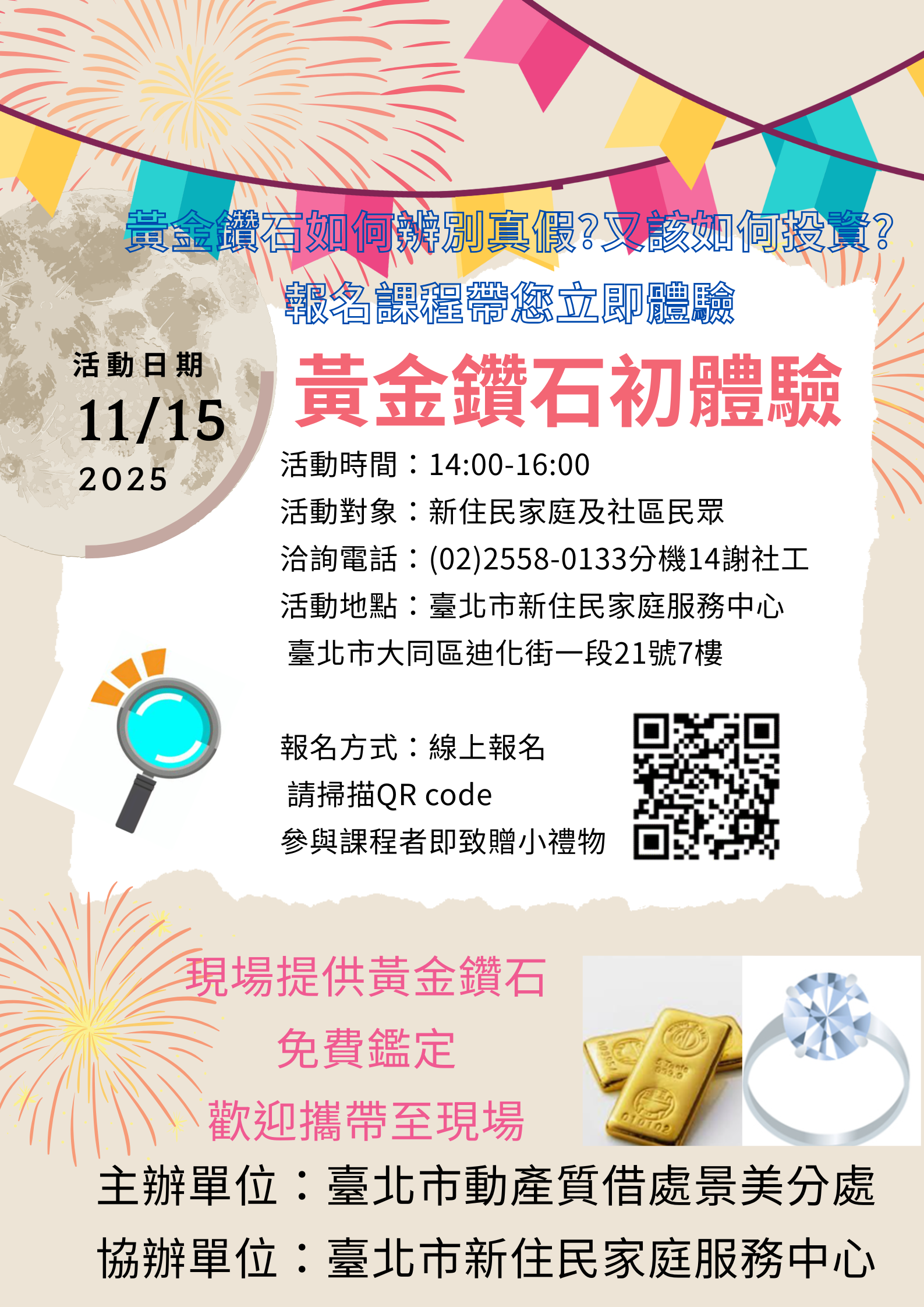 這次我們邀請專業講師帶你走進珠寶的世界,手把手教你分辨黃金與鑽石的秘密,現場還有免費鑑定服務,讓你一次搞懂、收穫滿滿!🌟