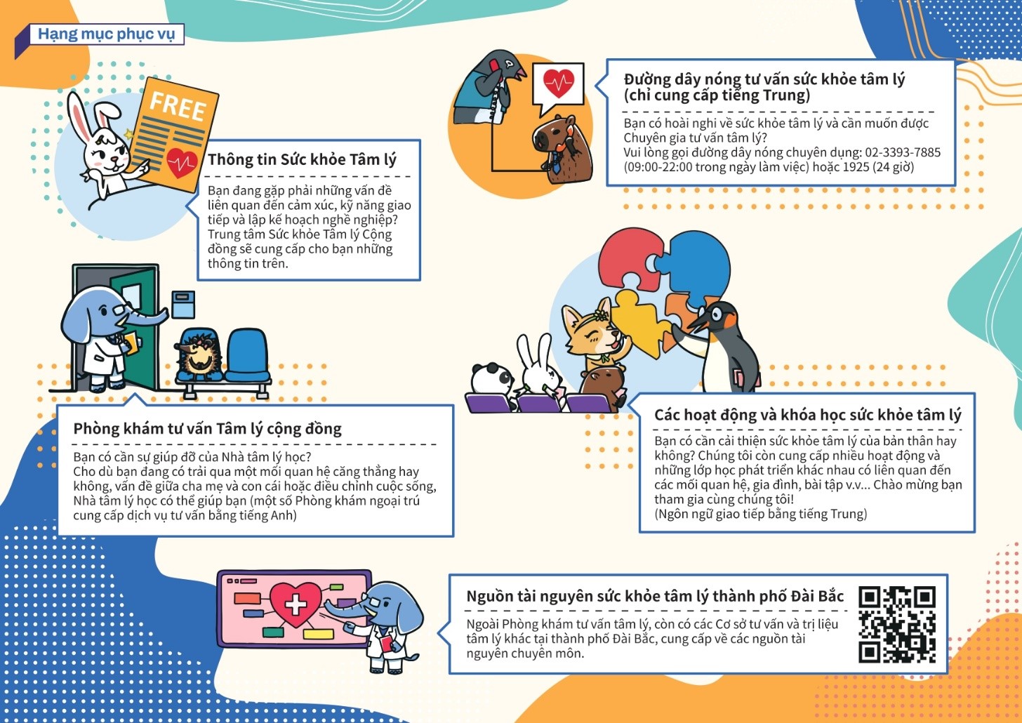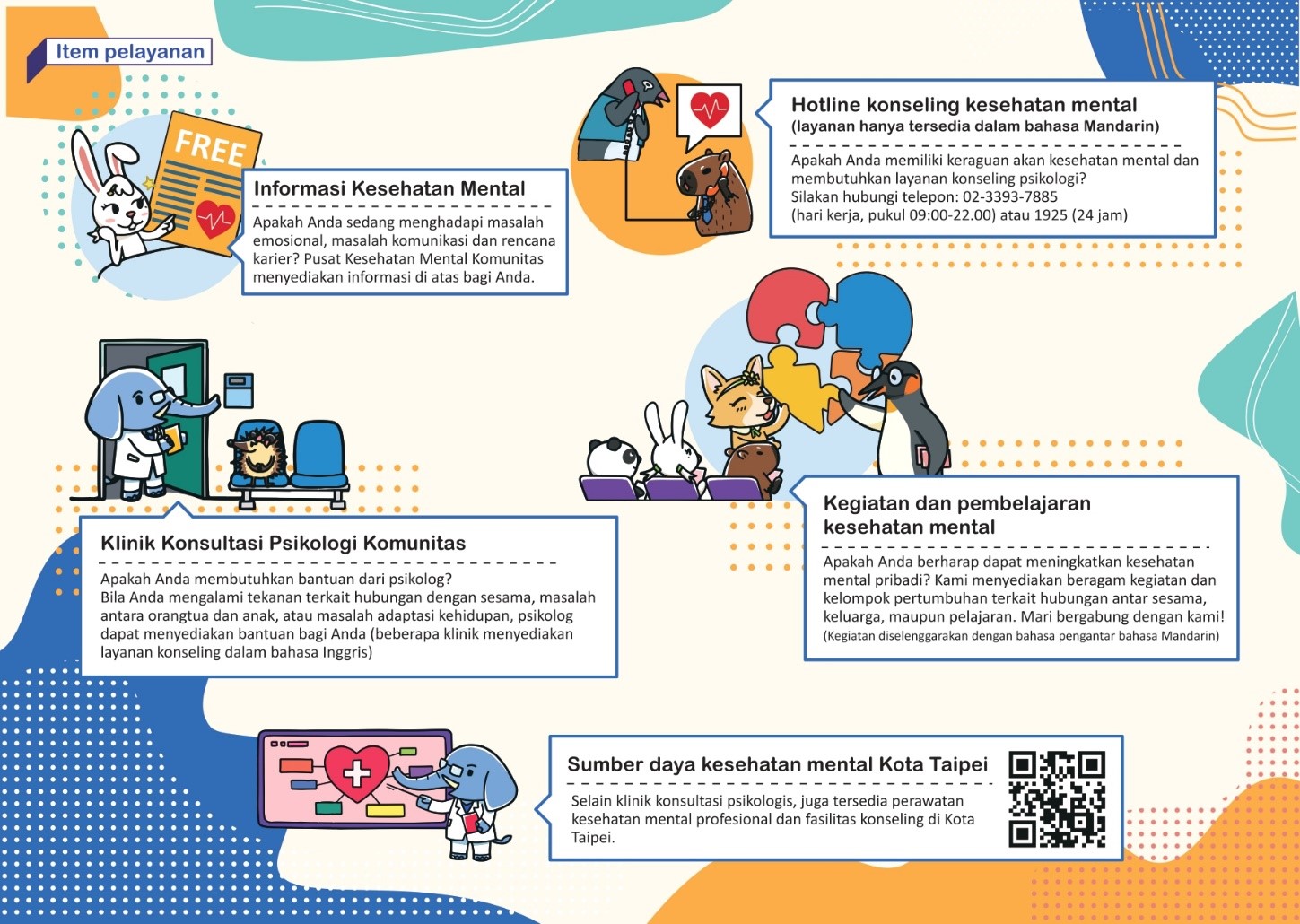 為了規劃更完善的新住民心理健康服務,請撥冗提供我們一些資訊及建議,這些內容採「不記名」,同時不會洩漏您的身分和個人資訊,請您放心。請填寫完成後,向臺北市衛生局兌換一份精美的小禮物。