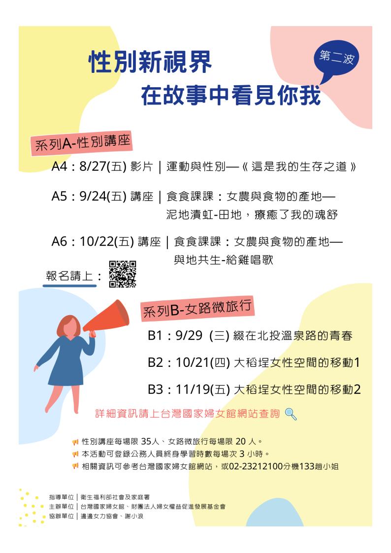 台灣國家婦女館辦理110年8月至11月性別平等教育宣導系列