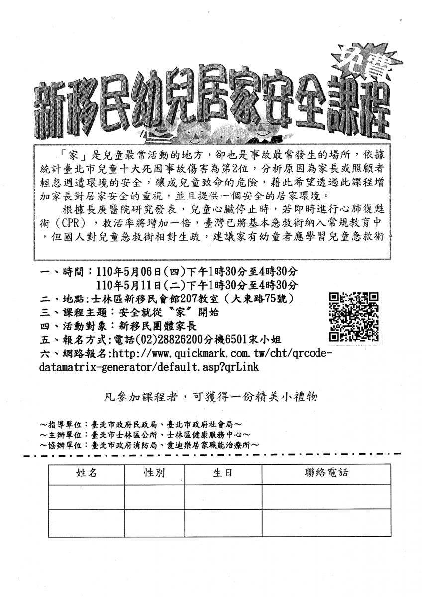 【轉知】士林公所新移民幼兒居家安全課程