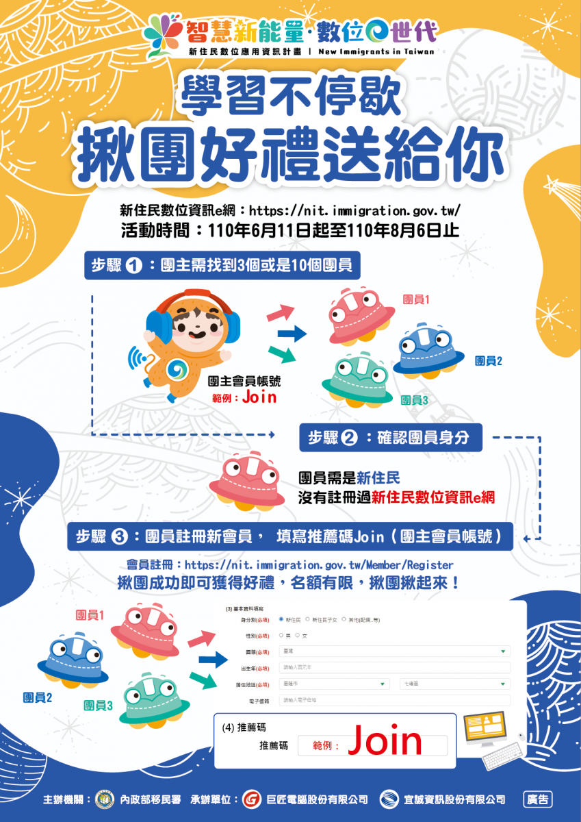 【轉知】內政部移民署-「學習不停歇-揪團好禮送給你」