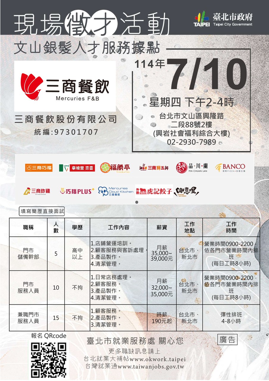 一、現場徵才:114/7/10(四)下午2:00-4:00