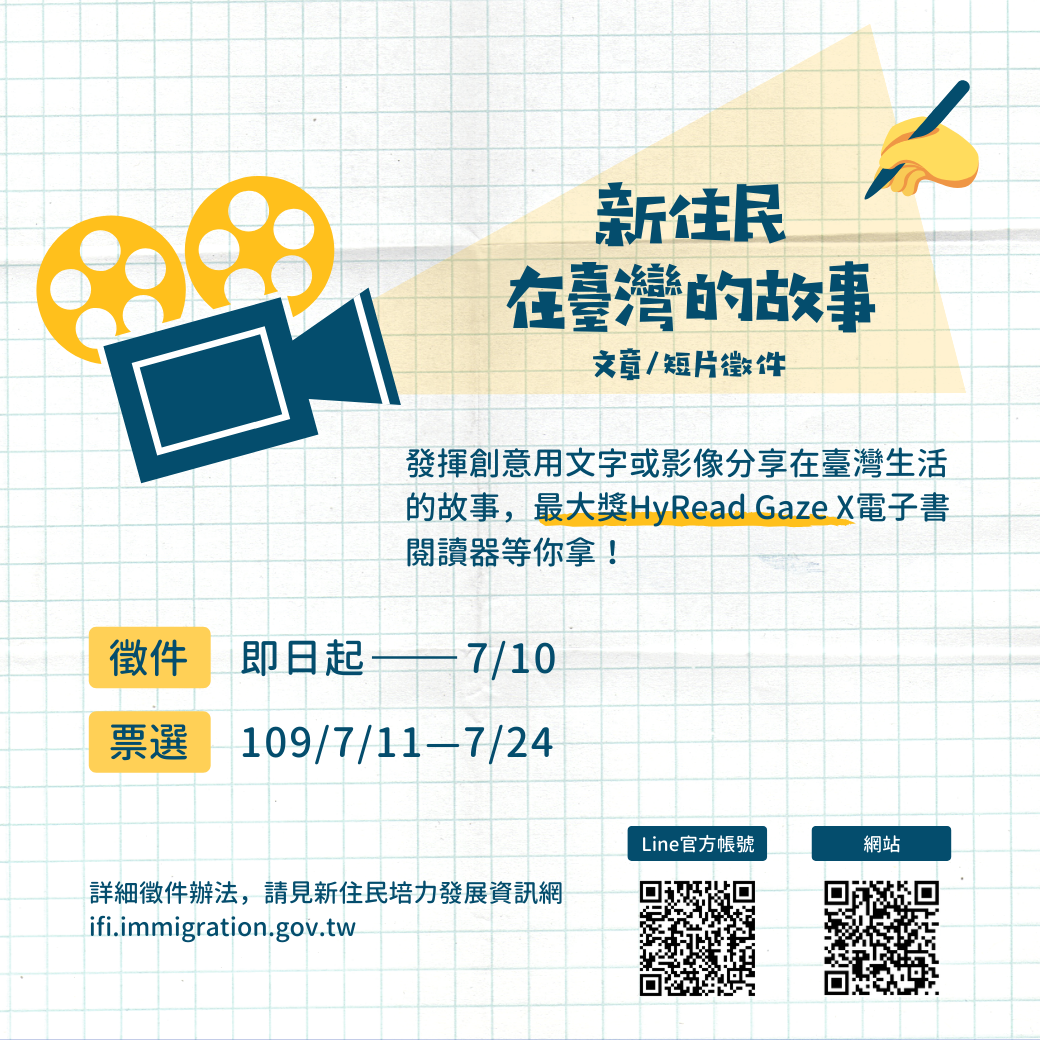 文章主題以「新住民在臺灣的故事」為題材,中文撰稿、題目自訂、字數500~1000字以內,並提供1張照片。請將電子檔傳至新住民培力發展資訊網Line官方帳號(Line ID:@ifitw),活動小組將統一上傳至活動網頁進行票選。