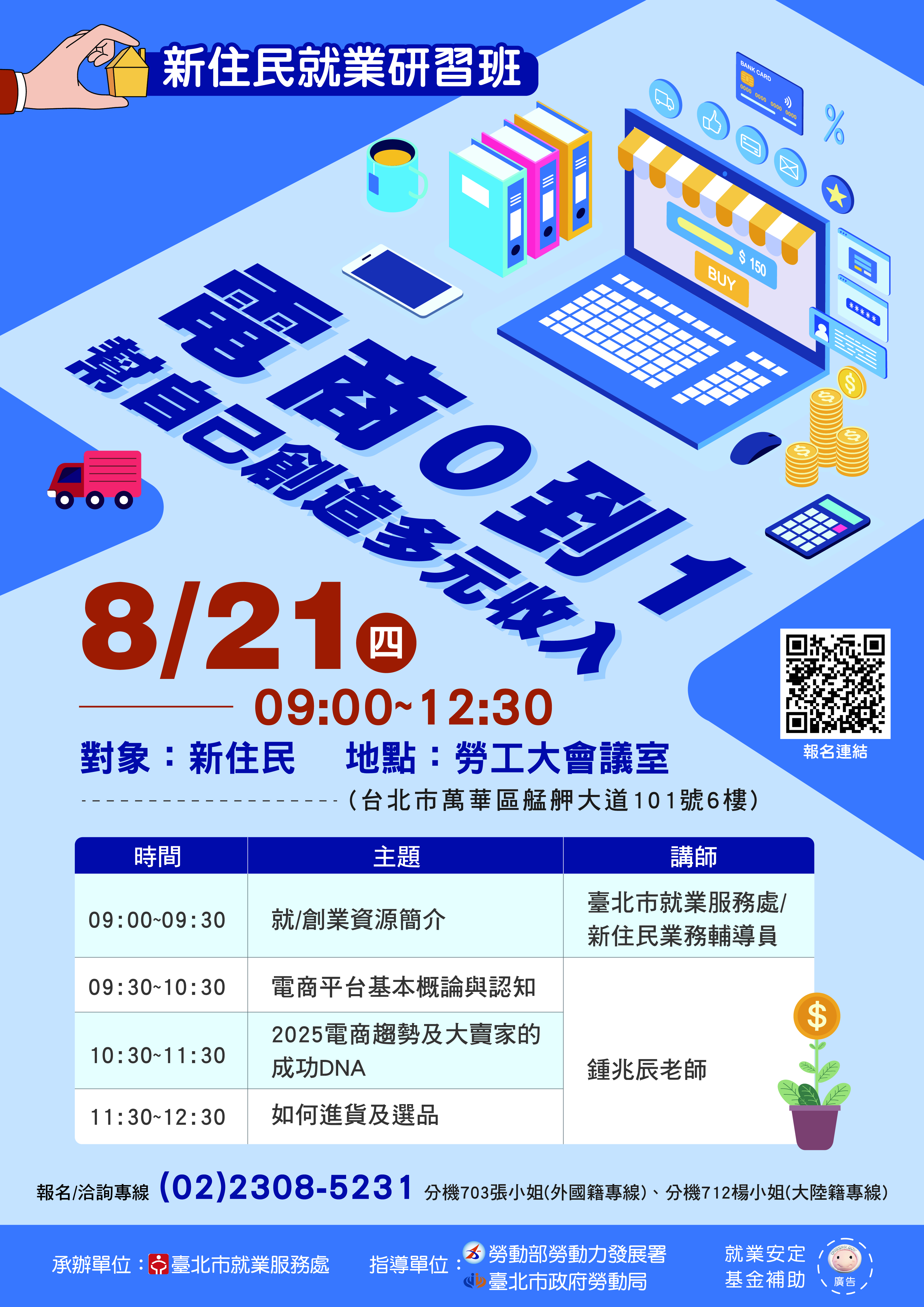 【轉知】臺北市就業服務處「電商0到1:幫自己創造多元收入」
