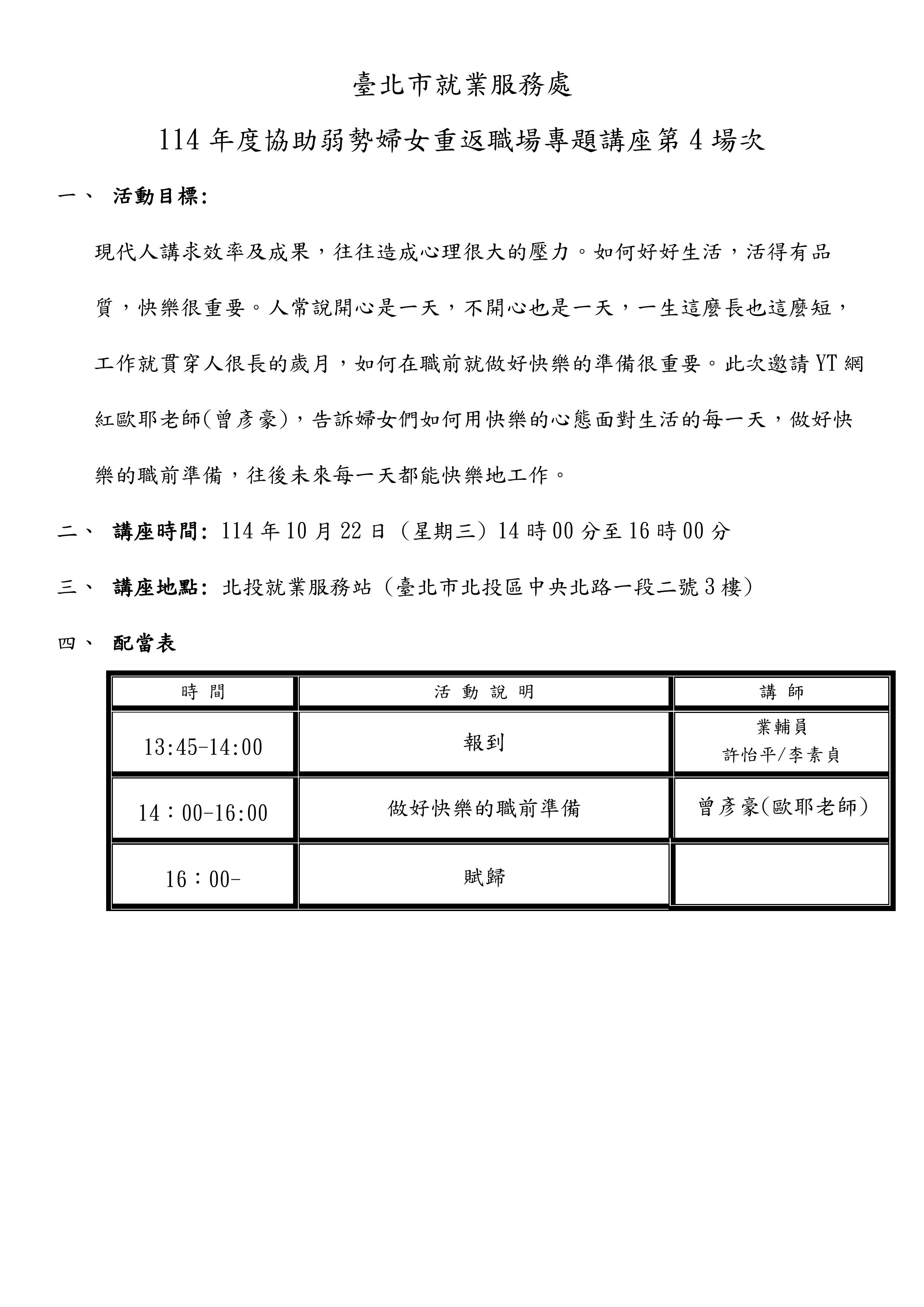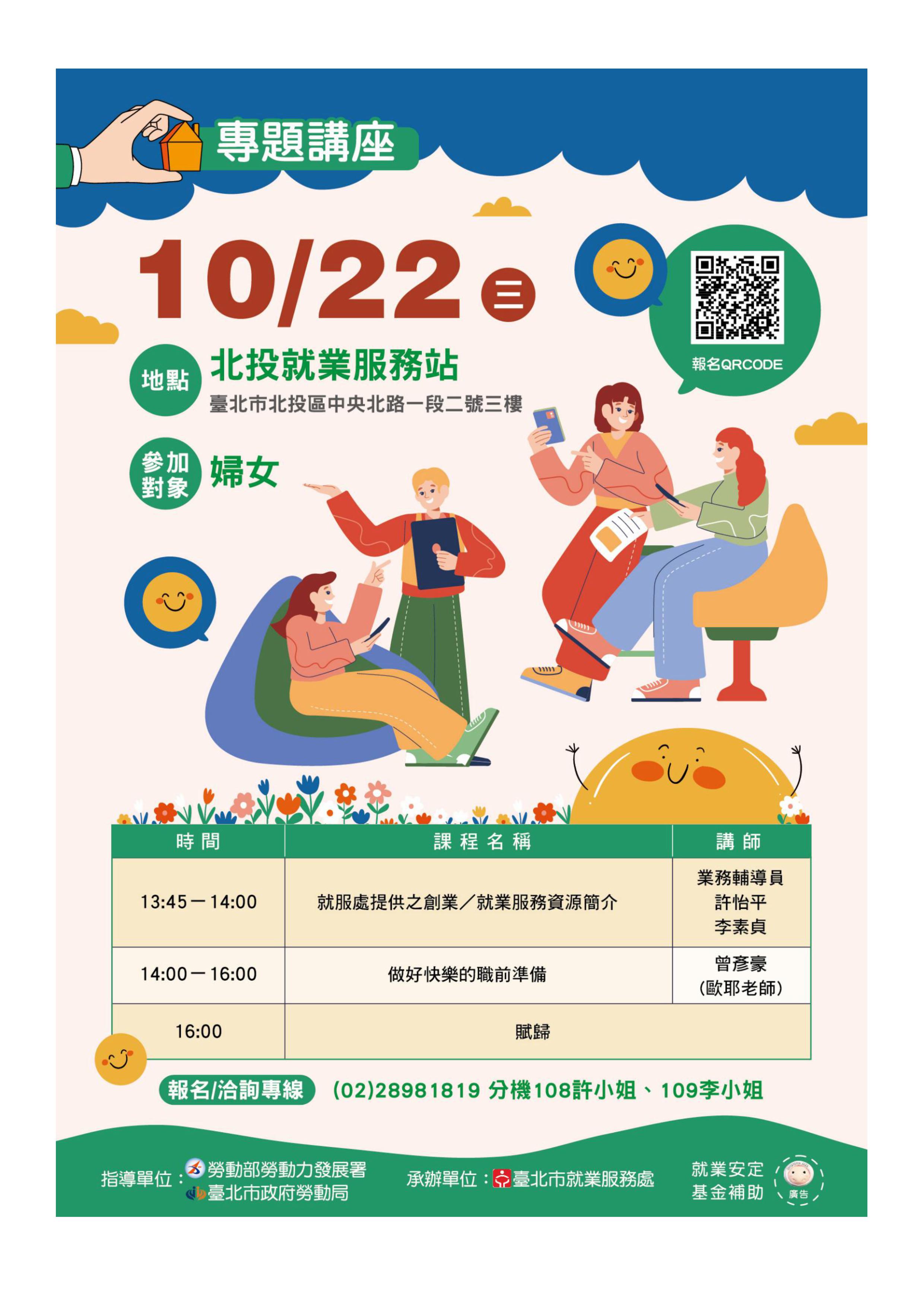📍 **地點:**北投就業服務站(台北市北投區中央北路一段2號3樓)