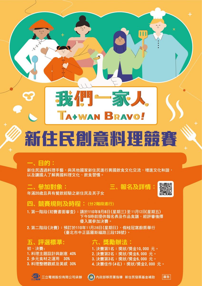 【轉知】 《我們一家人 Taiwan Bravo!》新住民創意料理競賽