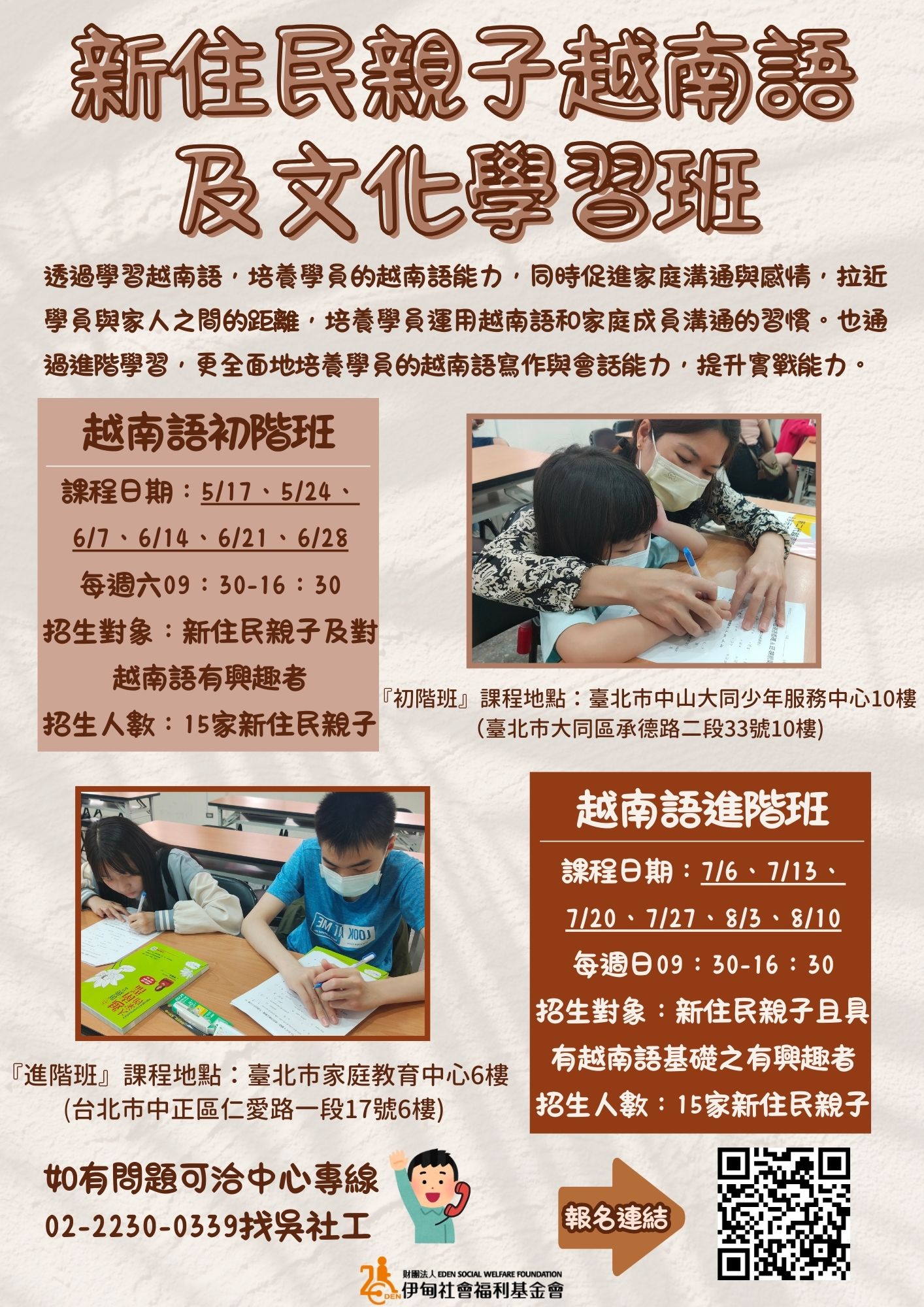 【轉知】伊甸新移民家庭成長中心-114年「新住民親子越南語及文化學習進階班」