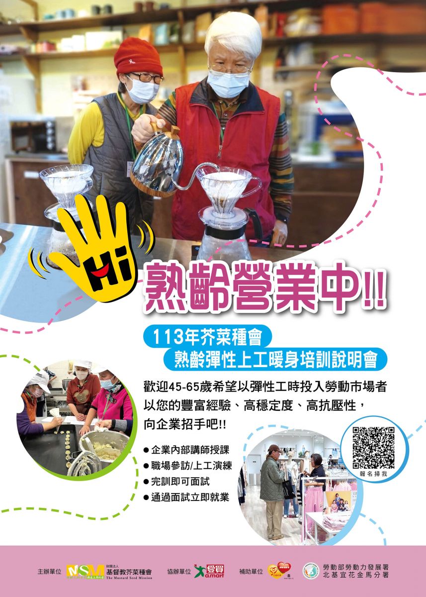 【轉知】芥菜種會-熟齡營業中~113芥菜種會彈性上工(兼職)暖身培訓說明會-永和愛買
