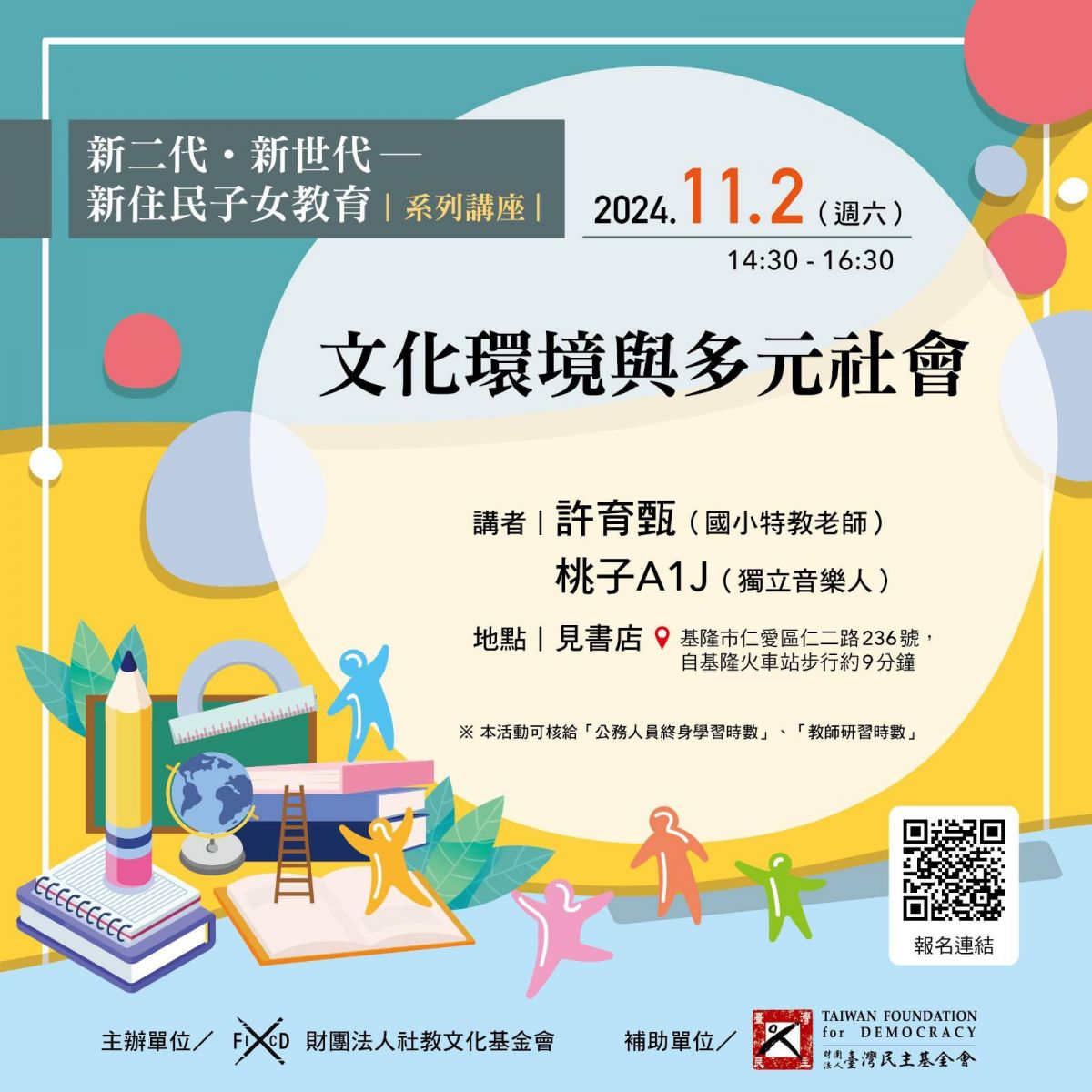 【轉知】財團法人社教文化基金會-新二代‧新世代-新住民子女教育系列講座(台北/基隆)