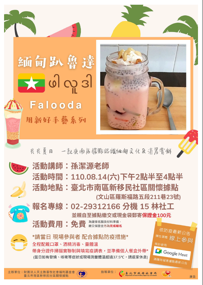【轉知】臺北市南區新移民據點-0814用新好手藝-緬甸趴魯達