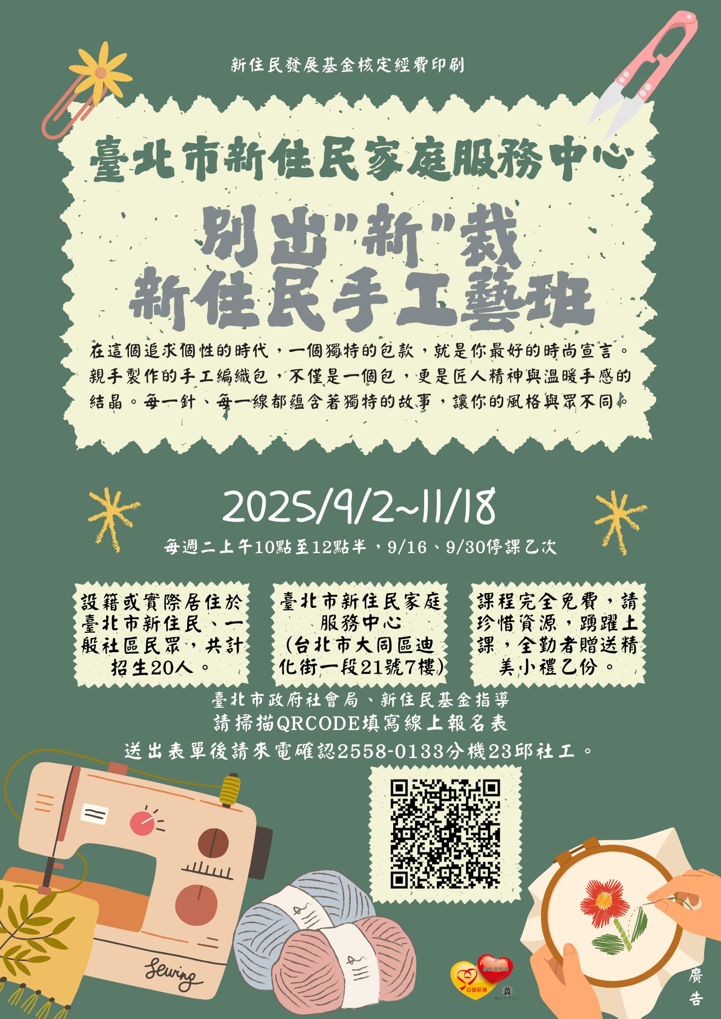👥 招生對象|設籍或實際居住於台北市的新住民、一般社區民眾,共計招收20人