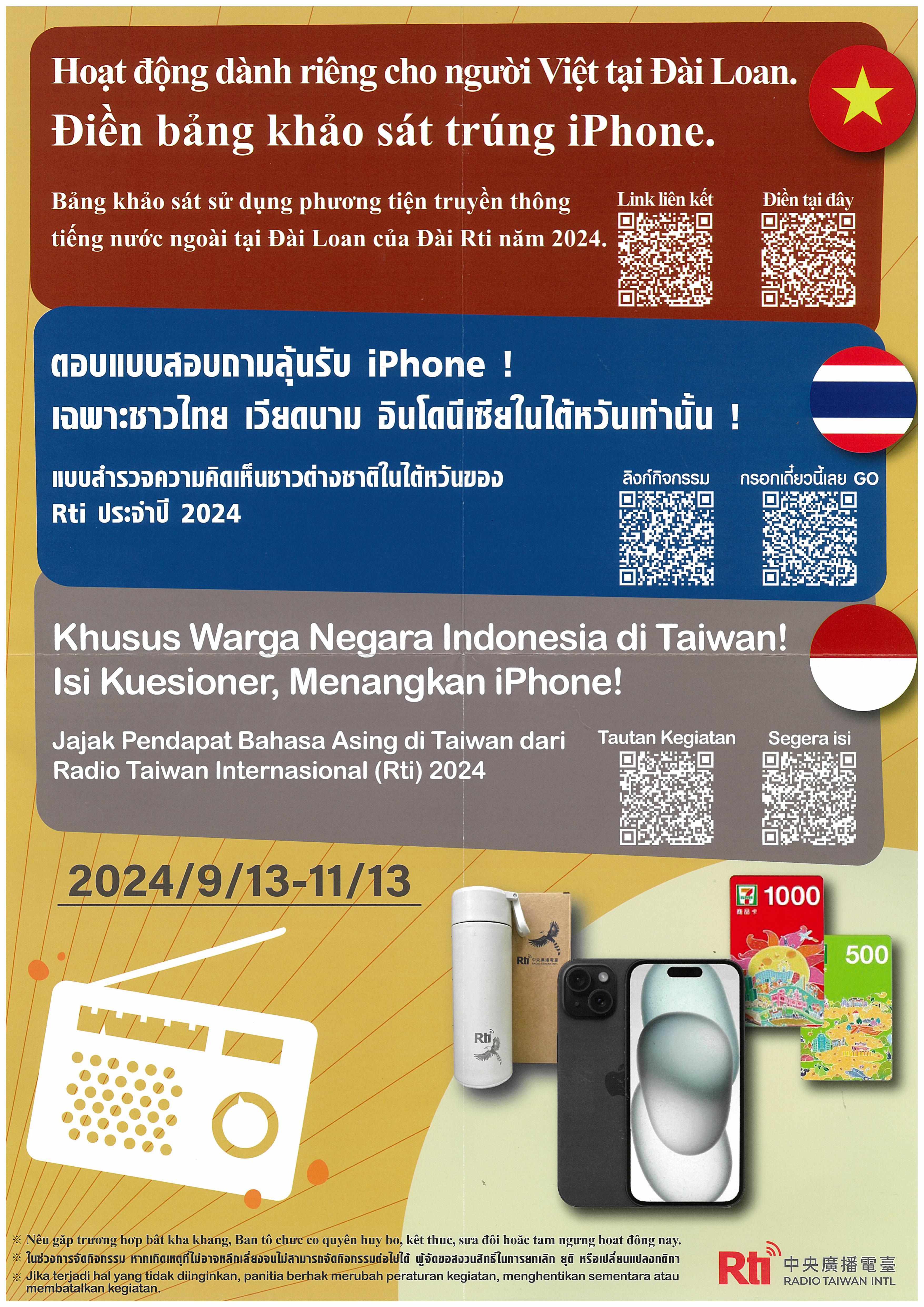 【轉知】中央廣播電台受眾研調組-印泰越境內外語意見調查