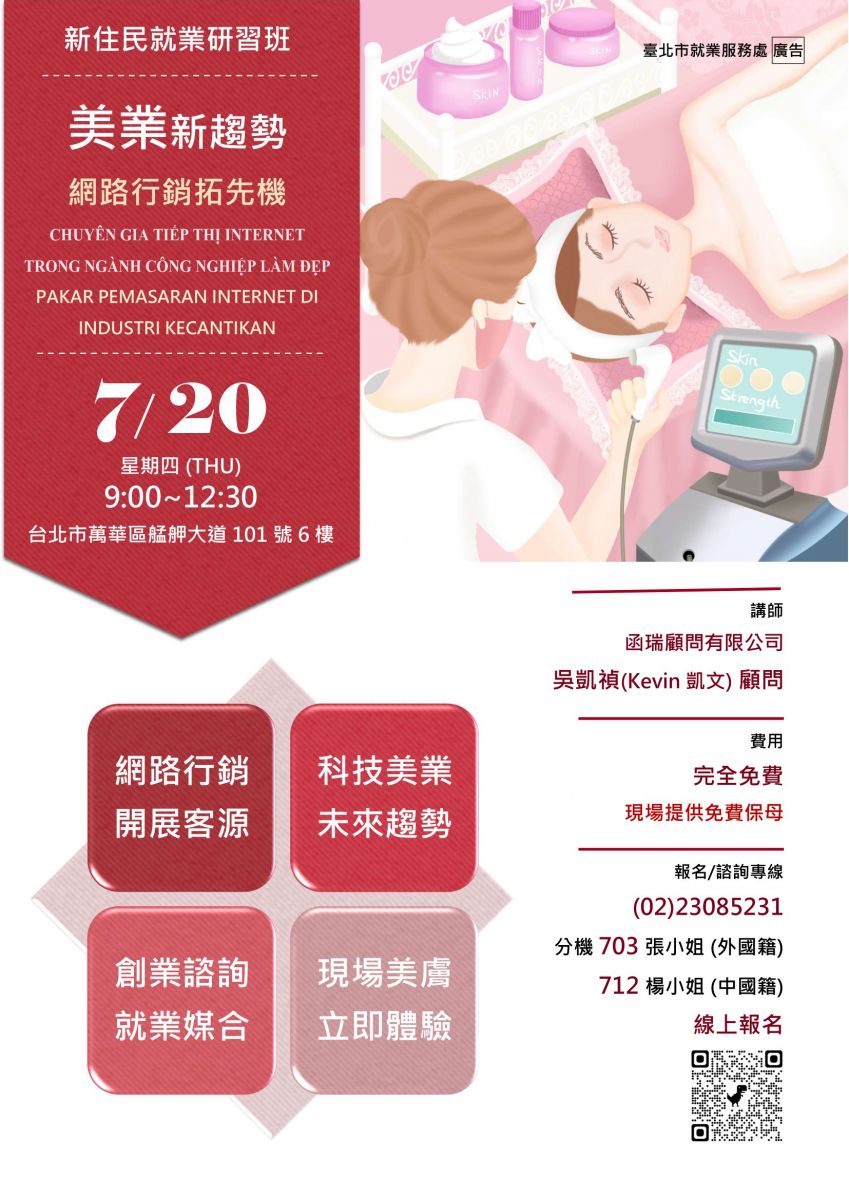 【轉知】臺北市就業服務處-新住民就業研習班~美業新趨勢~網路行銷拓先機~