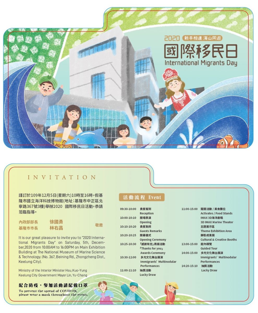 移民署將於109年12月5日(星期六)10時至16時,在基隆市國立海洋科技博物館本館3樓舉辦「2020國際移民日」