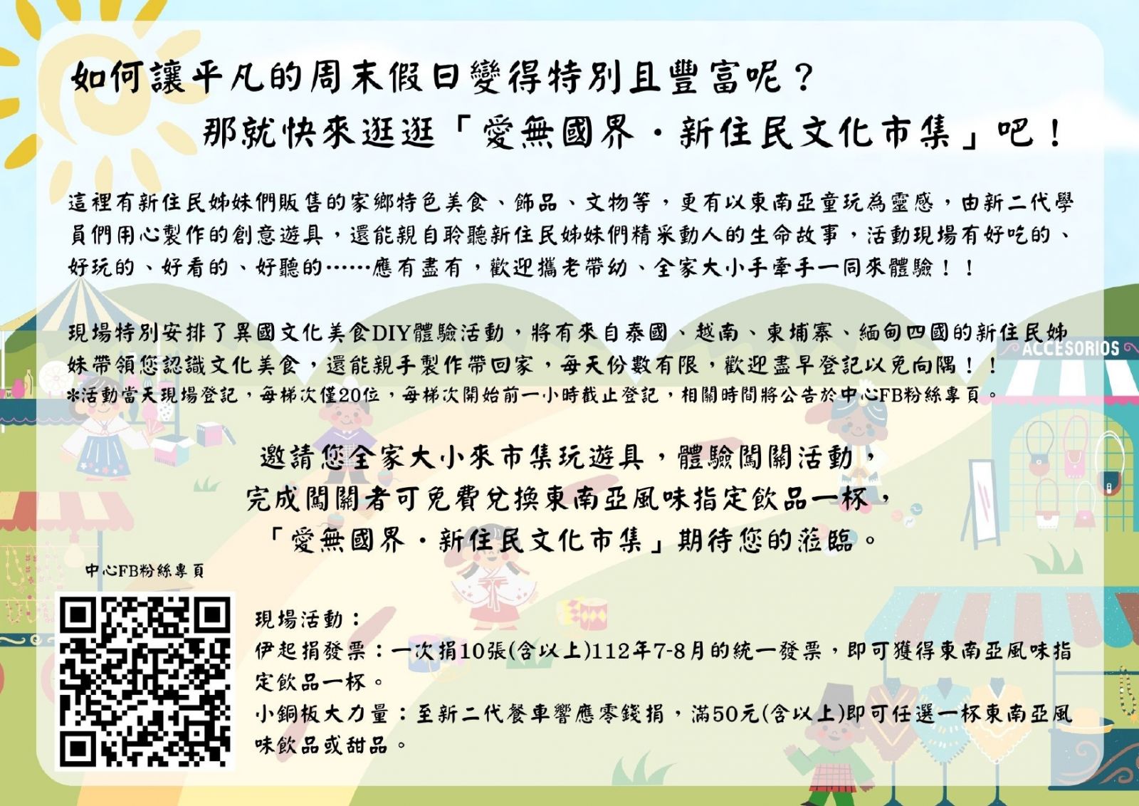 【轉知】伊甸基金會新移民家庭成長中心-愛無國界.新住民文化市集活動