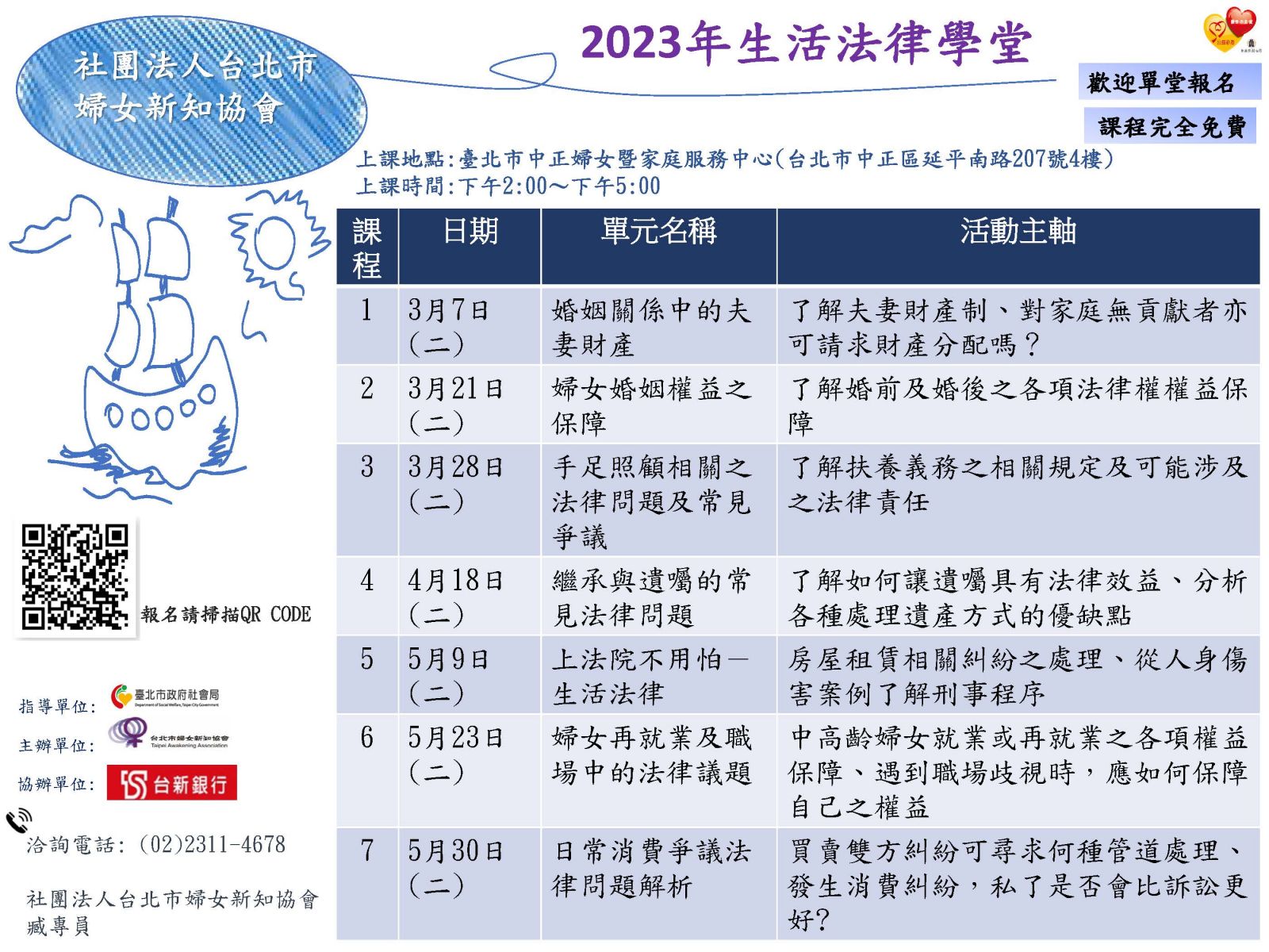【轉知】台北市婦女新知協會-生活法律課程