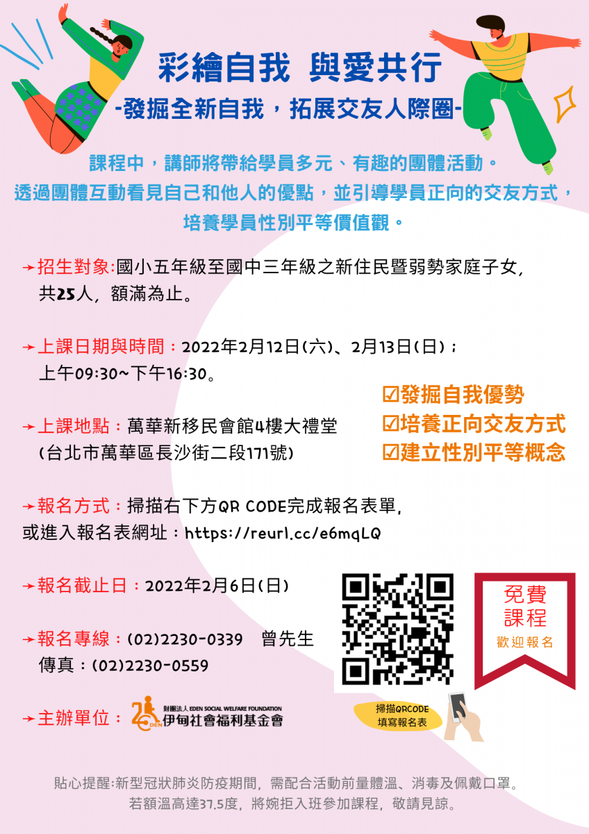 【轉知】《彩繪自我,與愛共行》111年兩性教育工作坊