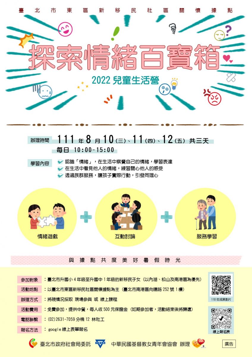 【轉知】東區據點-探索情緒百寶箱-兒童生活營