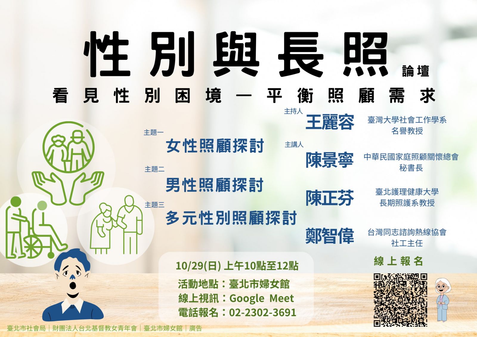 我們希望藉由論壇對話呈現不同性別在長照議題上的不同困境,破除照顧的刻板印象,讓我們能夠提早因應未來可能面臨的照顧世代!