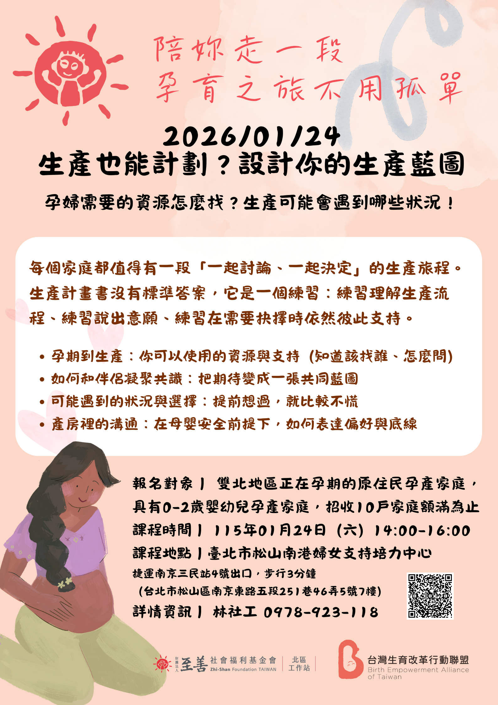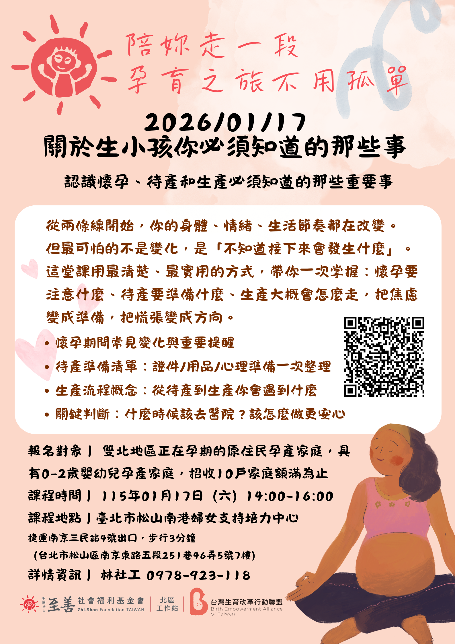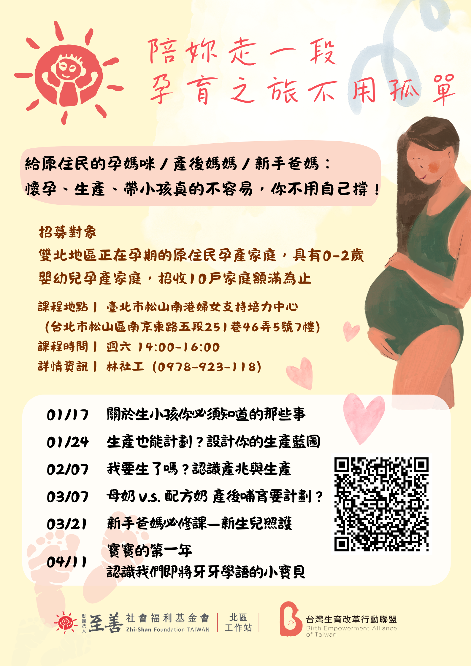 【轉知】財團法人至善社會福利基金會-辦理「原住民孕產育兒支持課程」系列活動