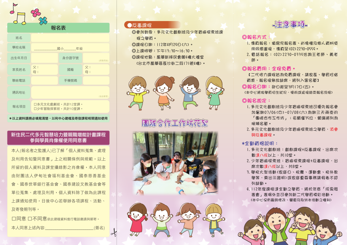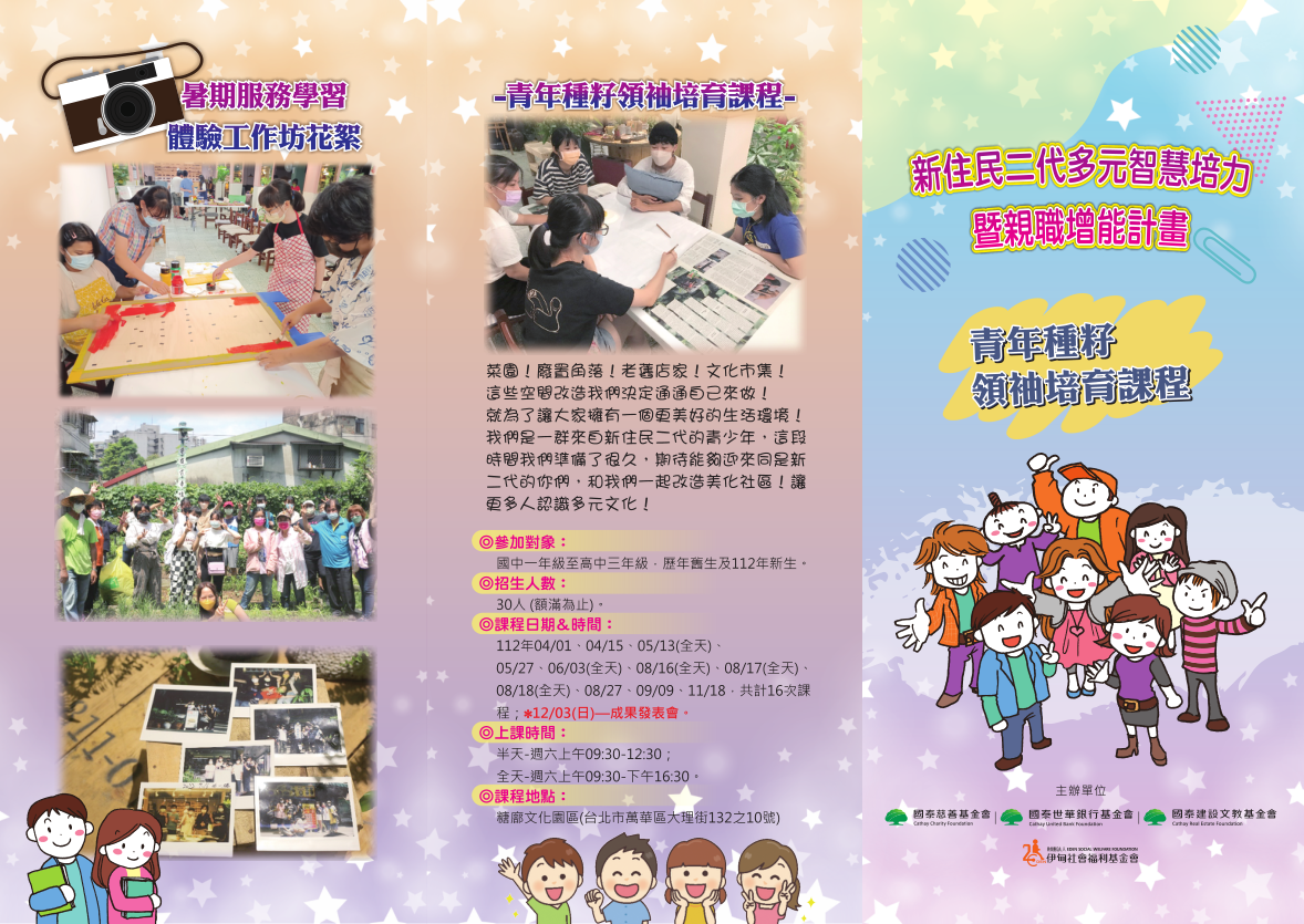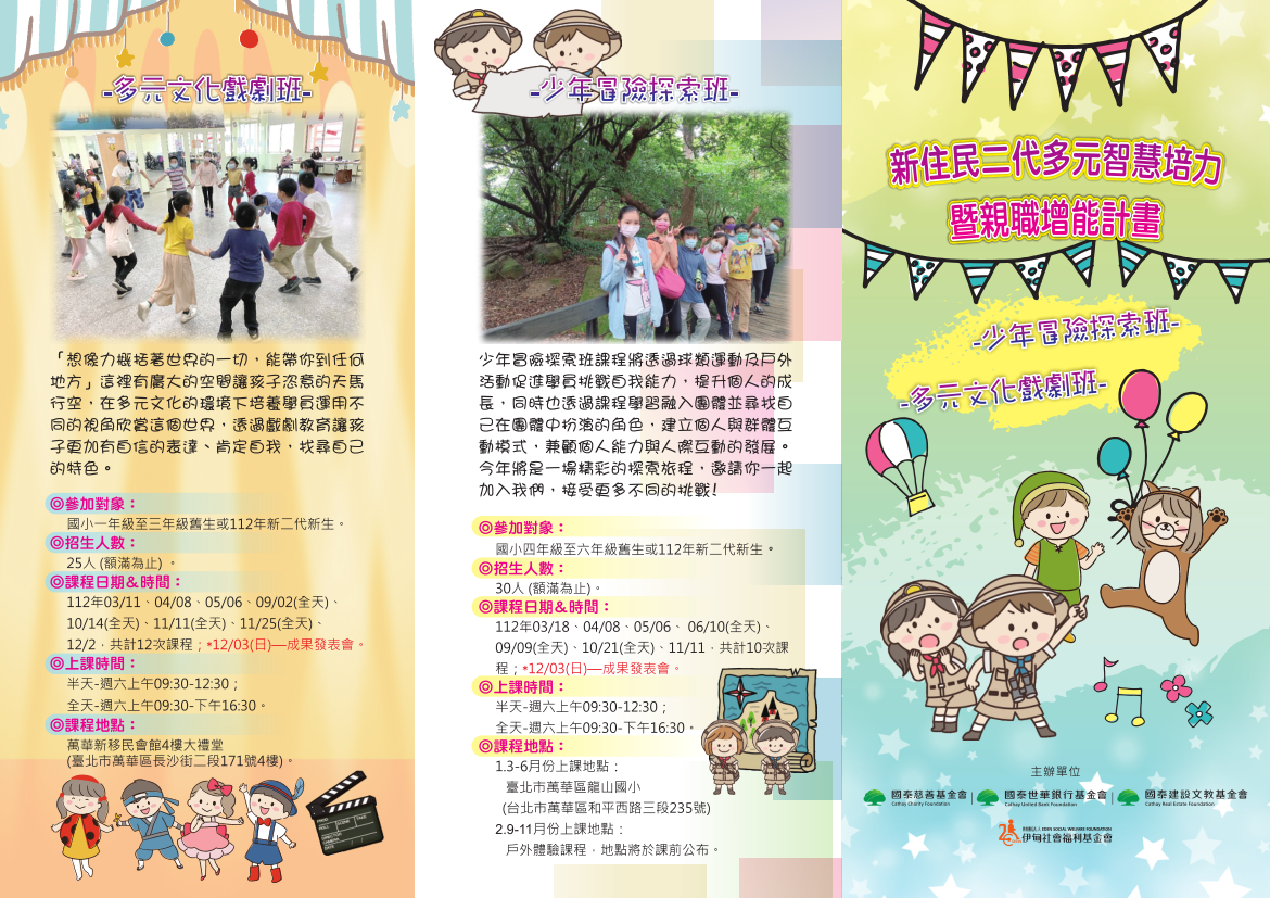 【轉知】財團法人伊甸社會福利基金會新住民二代多元智慧培力暨親職增能計畫